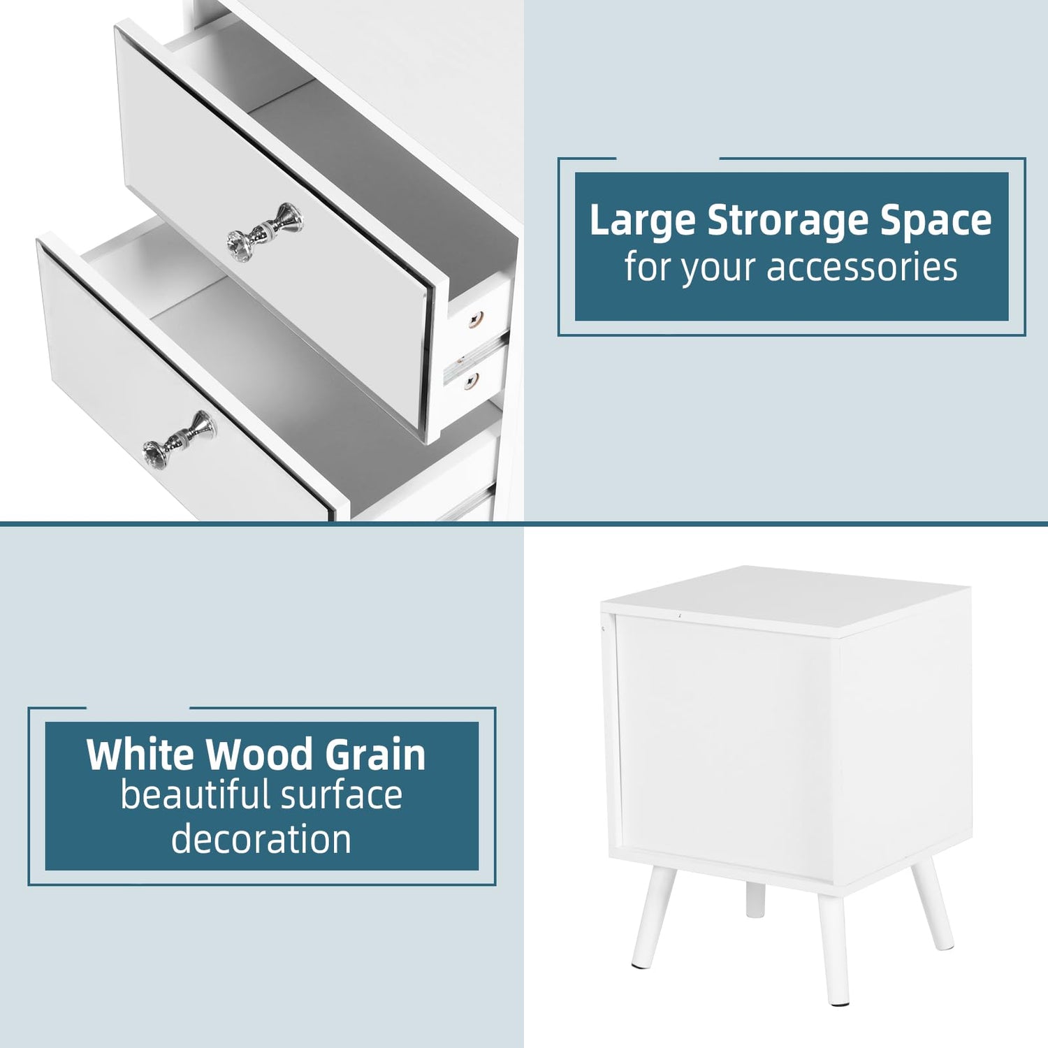 STHOUYN White Nightstand Set of 2, Mirrored Bedside Table Set of 2, Modern Bedroom Night Stands with 2 Drawer, Bed Side Table/Night Stand, End Tables Decorative Table Living Room (White)