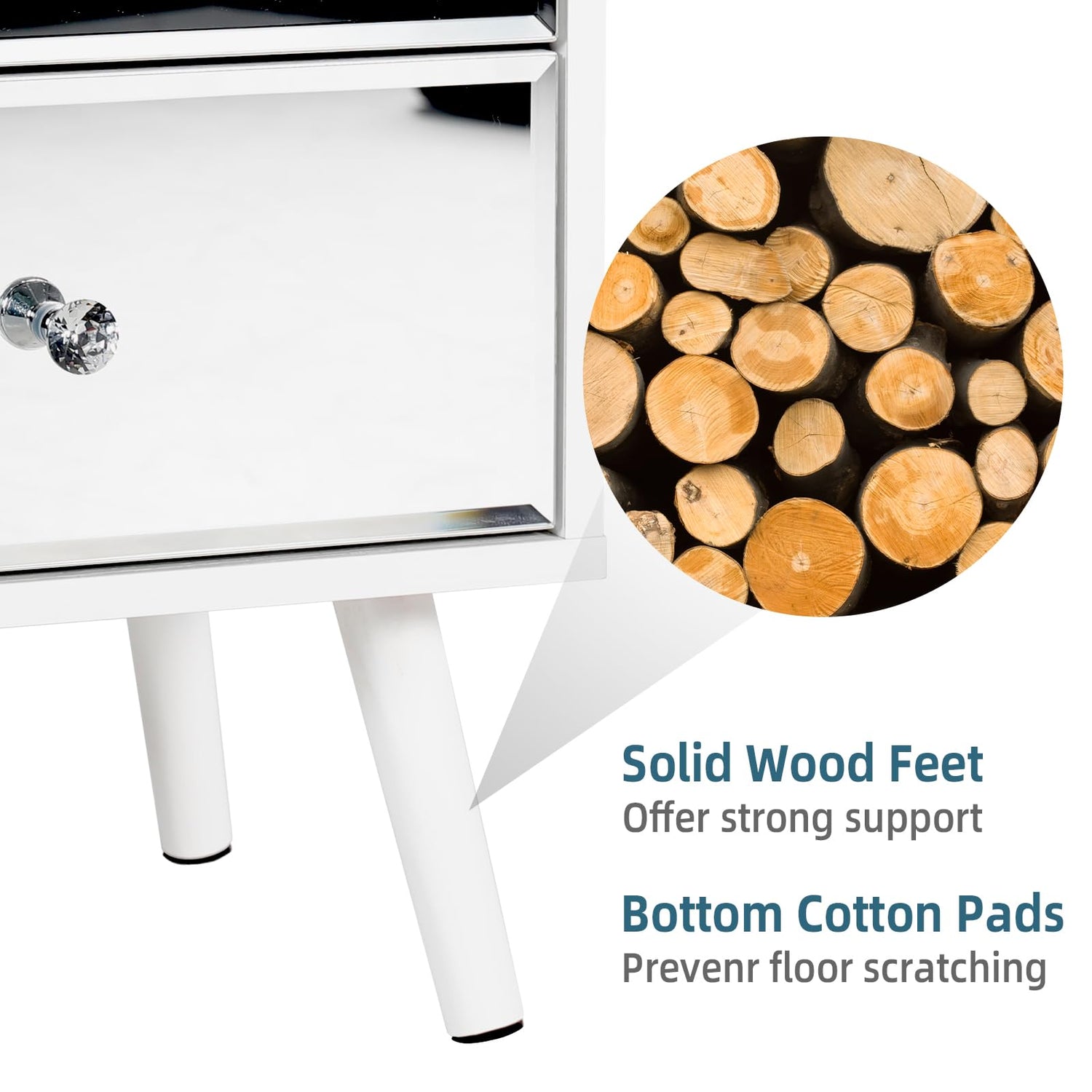 - 【Mirror Quality Upgrade】We have added a beveled edge technology to the mirror edge of the bedside table to protect your hands from scratches during daily use. And it has undergone explosion-proof treatment, so it will not be damaged during transportation. Easy cleaning. Keeping in a brand new state forever.