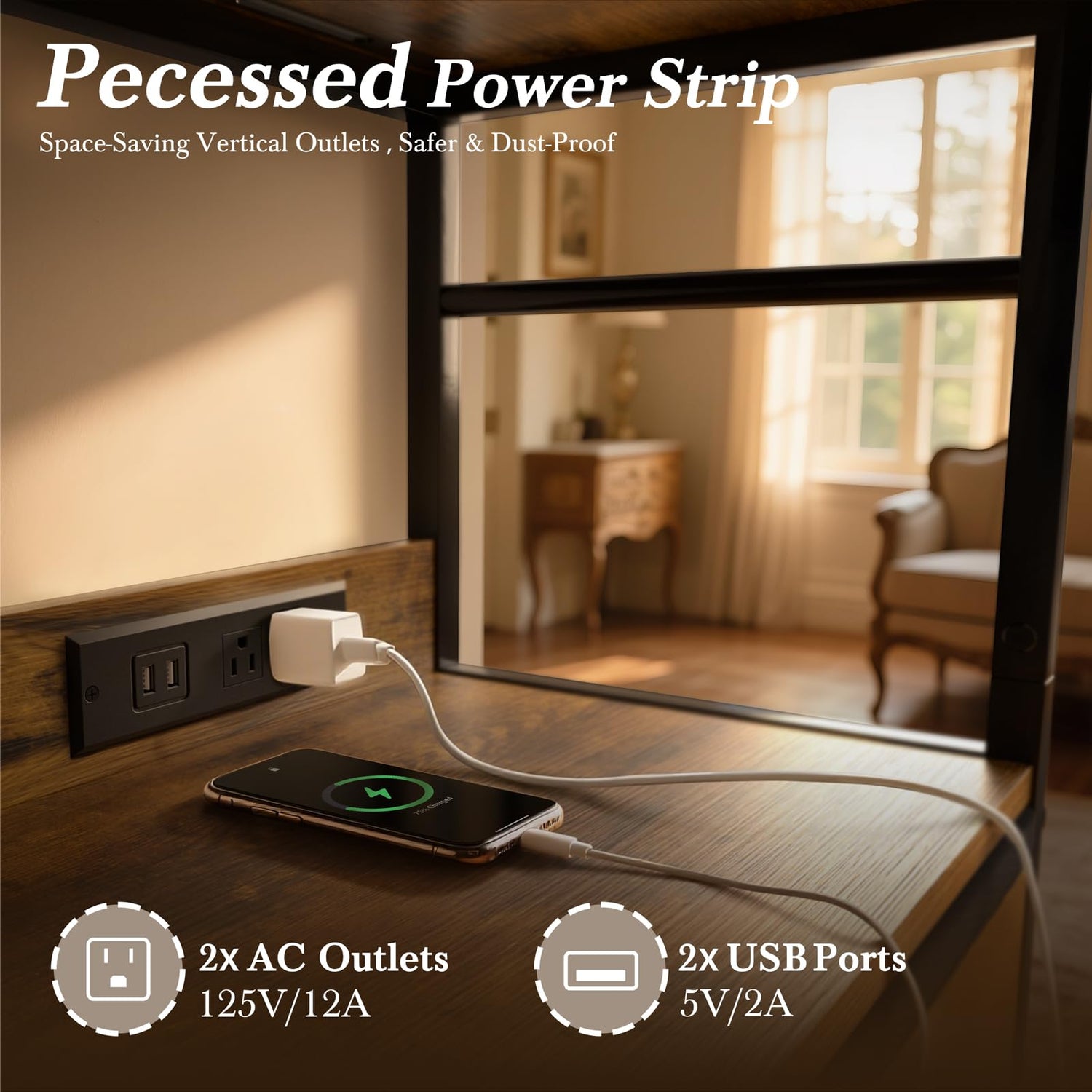 - [Built-in Charging Station] The bedside table with drawer features 2 AC outlets and 2 USB ports, providing flexible power options for your devices. Keep your phones, tablets, and bedside essentials powered throughout the night.