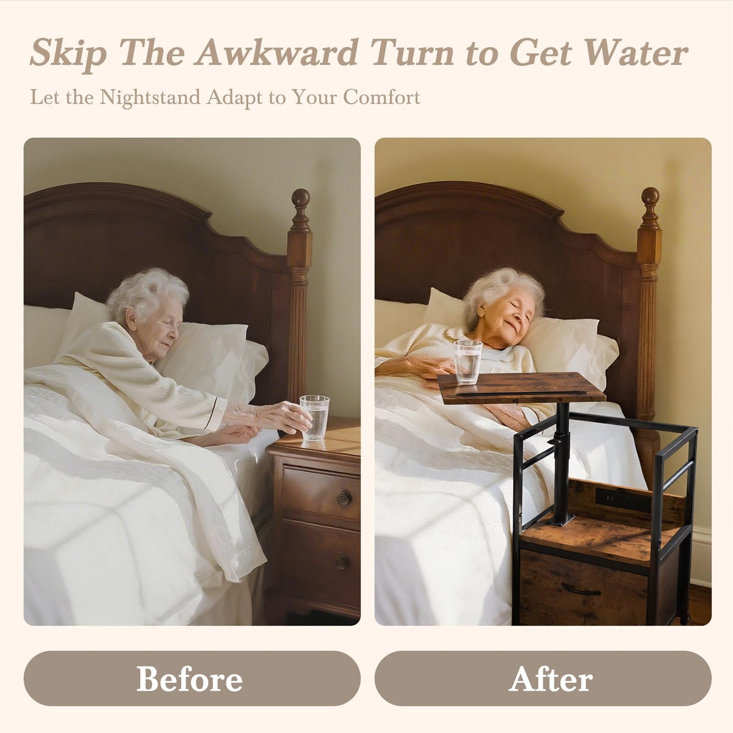 - [Smooth-Rolling Wheels with Locks] The side table for bedroom features 4 locking casters with 360° swivel, easily transitioning between carpet and hardwood floors. The flip-lock mechanism provides instant stability when stationary, while allowing effortless mobility when needed - perfect for flexible room layouts.