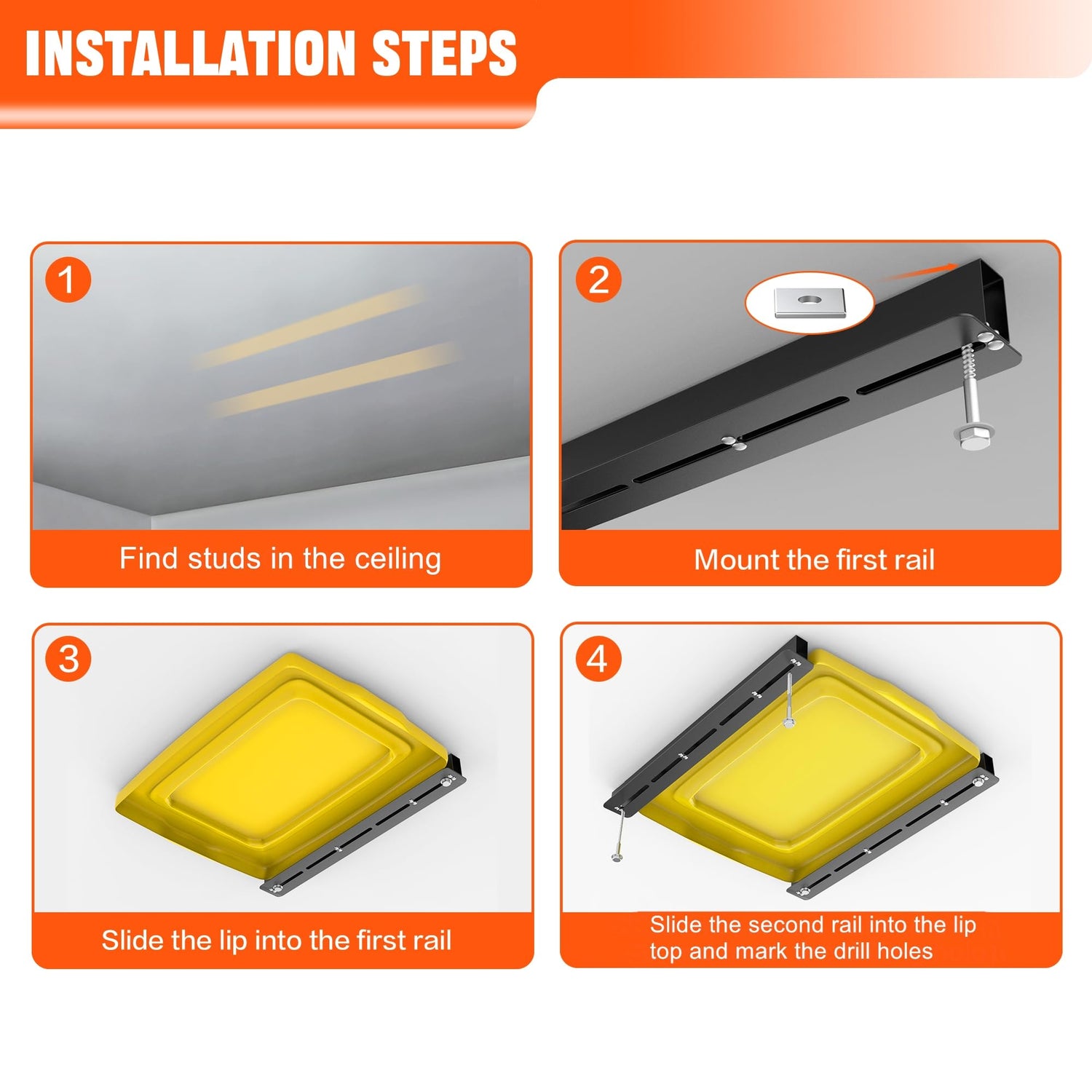 - Convenient Overhead Storage: Mounts securely to 16" or 24" ceiling joists for a quick, hassle-free installation. Designed to fit 7-27 gallon storage bins (not included), creating a straightforward solution for overhead storage