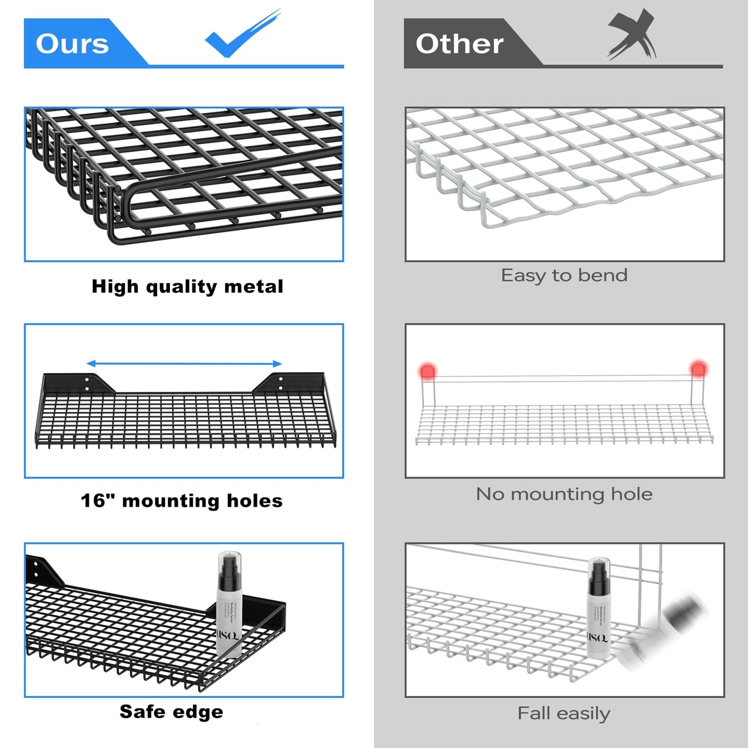 - Easy Install: Comes with all necessary screws and mounts directly to wall studs(16") for secure weight support. Install shelves one below another (vertically) or side by side (horizontally) to fit your space