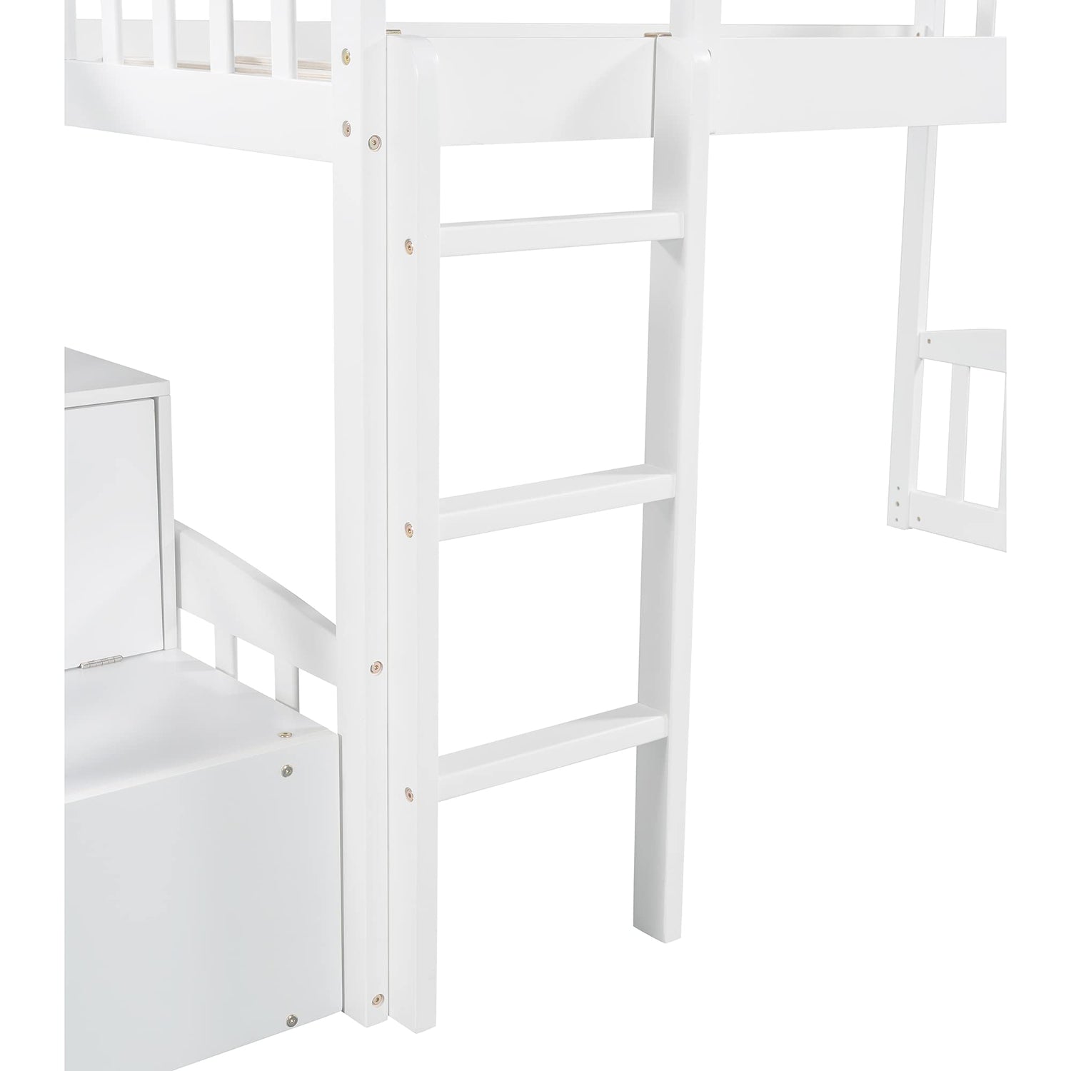 Details: This Stairway Twin Size Loft Bed with Drawers and Slide is a minimalistic,