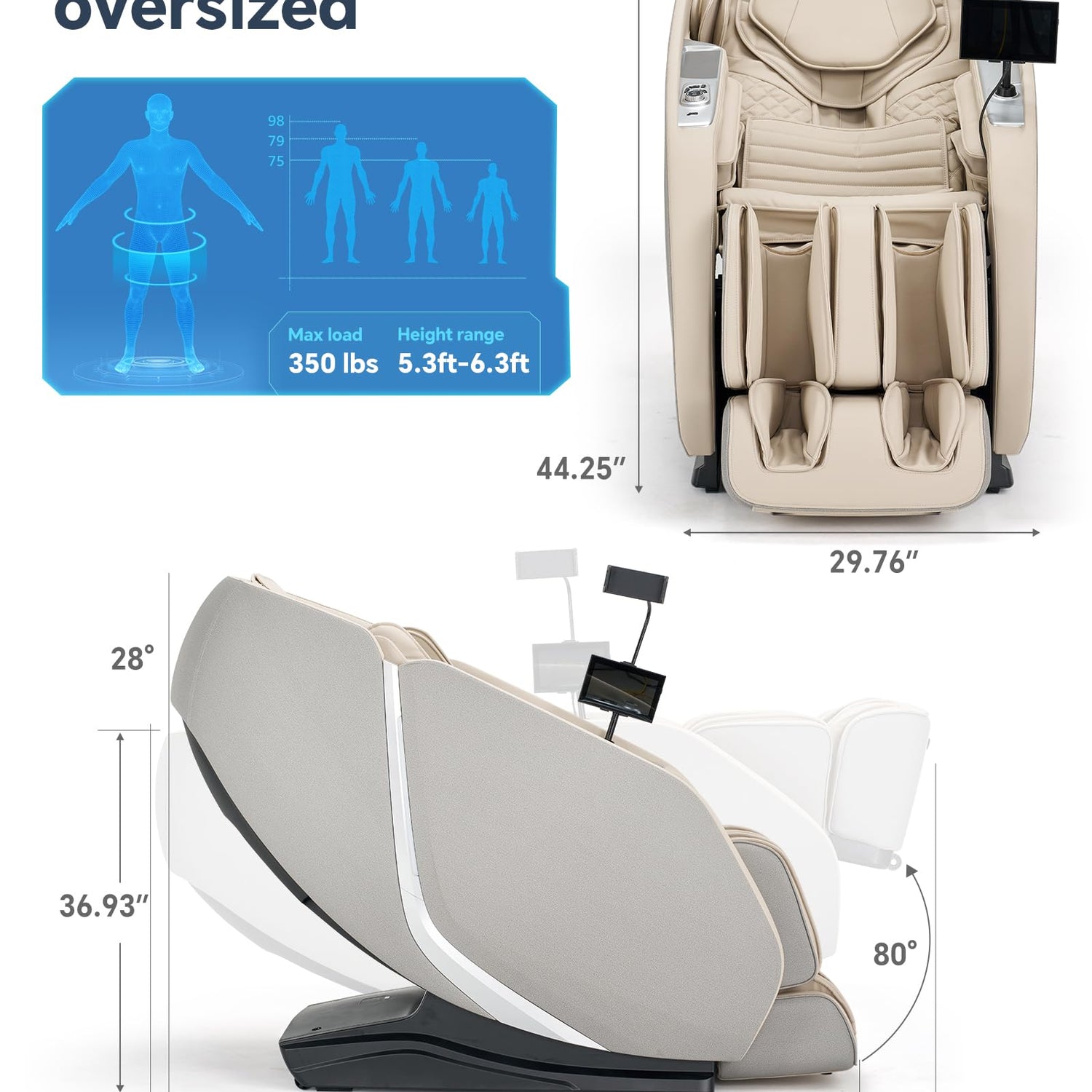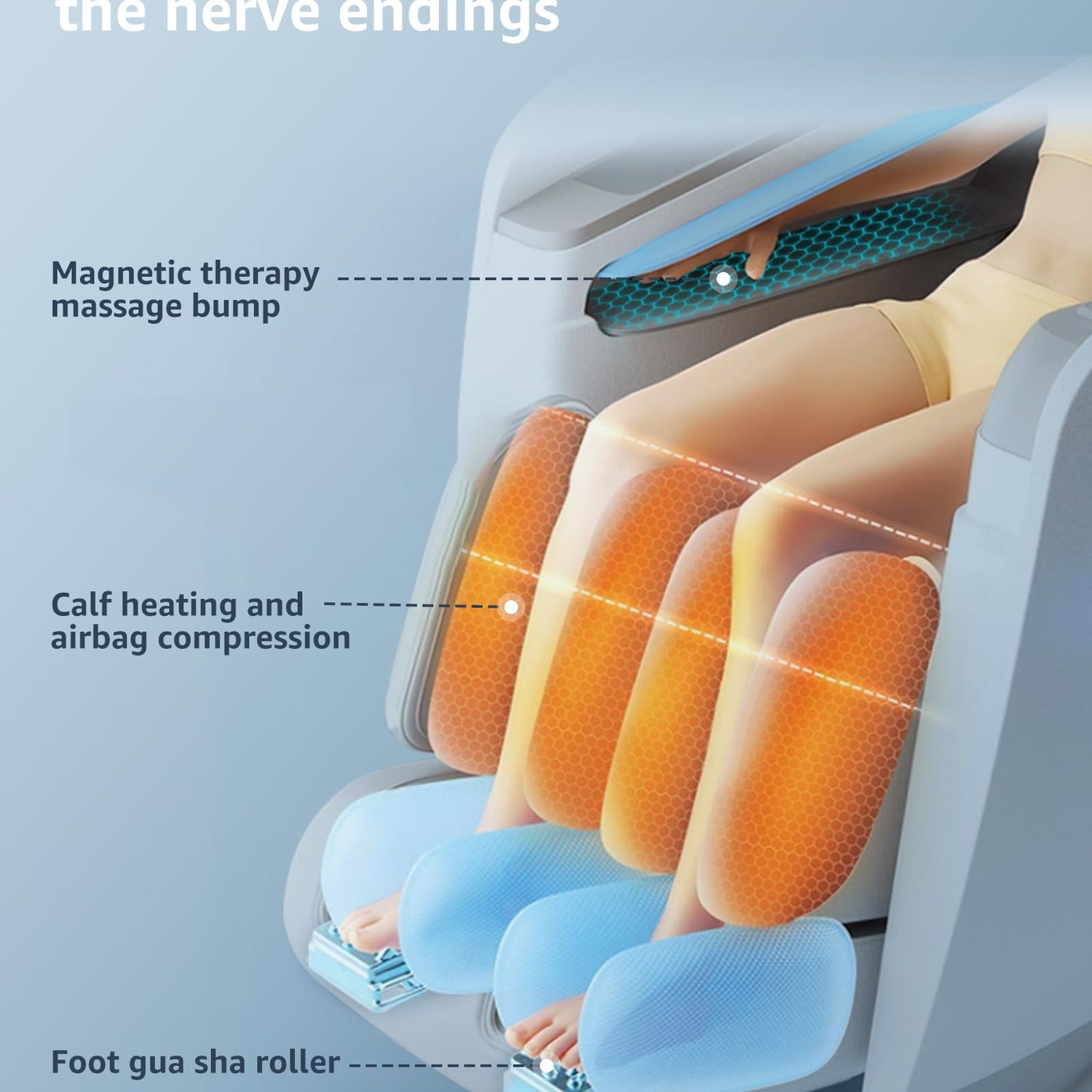 - Premium full-body massage chair with upgraded features: dual 53-inch sl track massage system for torso massage, magnetic therapy for hands, and roller-scraping for feet. Over 40 airbags massage from shoulders to toes, plus heated back and calf massage - delivering truly comprehensive relaxation.