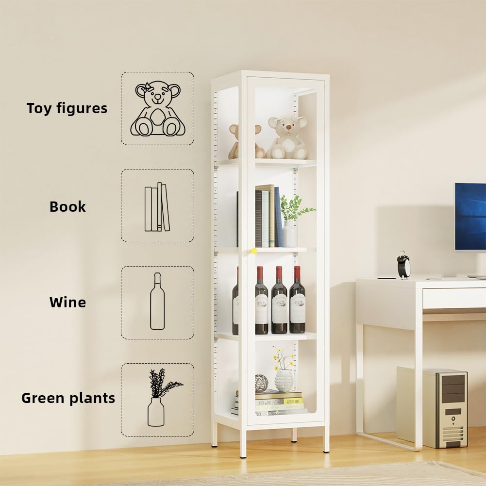 VCGGAIP Metal Display Cabinet with Glass Doors,4-Tier Curio Cabinet with Adjustable Shelves,Display Cases for Plant, Book Bathroom, Living Room, Collectibles Figure