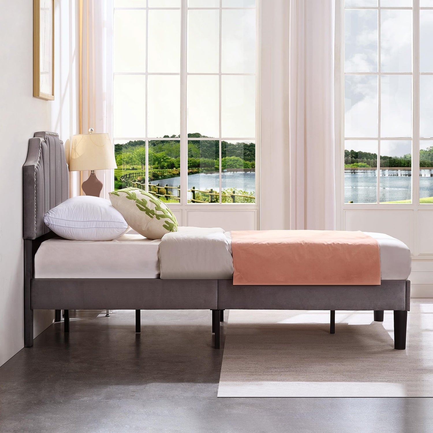 Velvet-Upholstered Fabric: The surface is upholstered in velvet fabric, offer a luxuriously soft and smooth touch. The fabric’s rich sheen adds a touch of elegance and warmth to the bedroom, creating a cozy and sophisticated atmosphere.
