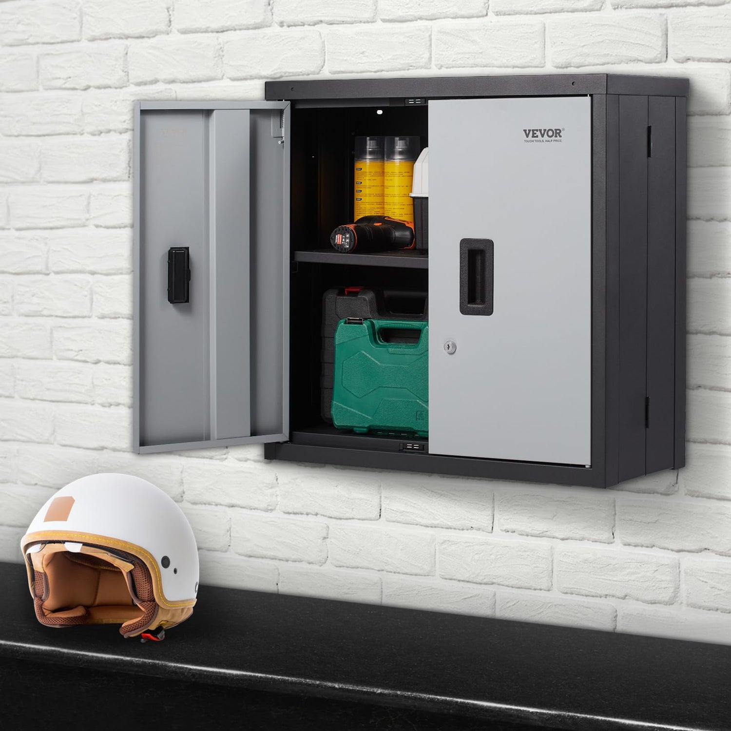 - Foldable Wall Cabinet: VEVOR wall cabinet is crafted for garage tool storage organization, it can be folded into 3.5 inches in width and expandable into 12 inches wide for storage. This wall mounted cabinet is very easy for installation and built upon quality material, it’s made of 0.6mm thickened steel board with powder-coated surface that work against scratches and corrosion.