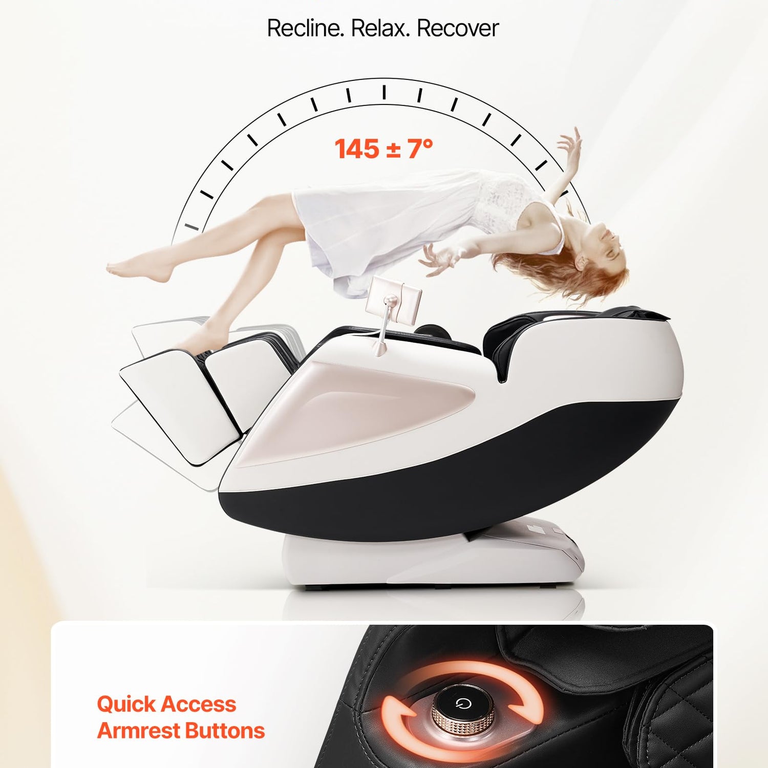 - Zero Gravity Experience: With 3 tilt angles available, the zero-gravity position elevates your knees above your heart to reduce spine pressure and promote blood circulation. It relieves heart pressure and is ideal for daily care of lumbar disc herniation