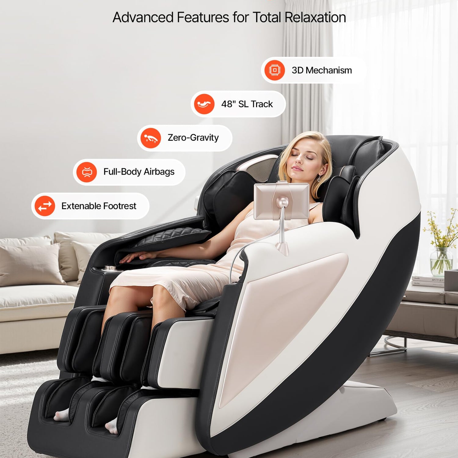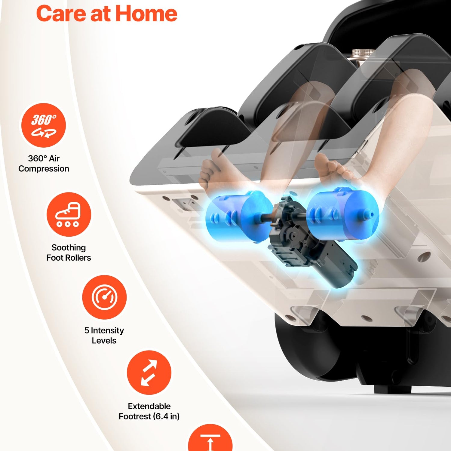 - Full Body Stretch: The leg airbags apply pressure to stretch the fascia, while the foot rollers intensively stimulate pressure points to alleviate foot soreness. The reclining backrest allows for full-body stretching, making it ideal for post-workout muscle relaxation and relieving fatigue