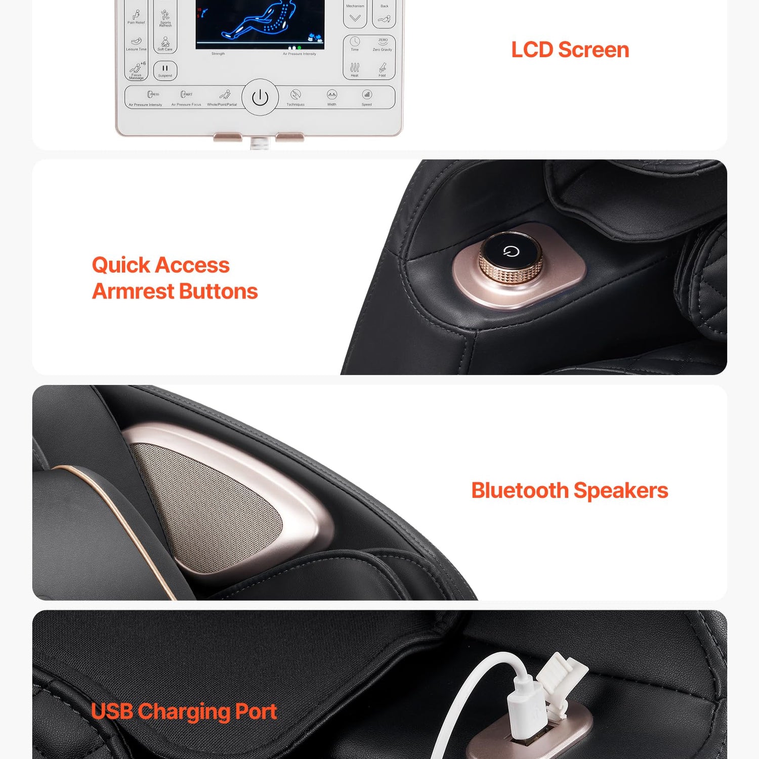 - Smart Experience: The LCD screen and armrest buttons provide quick access to settings, while USB charging and Bluetooth speakers seamlessly connect to your phone. Experience a fully immersive spa experience without leaving your home