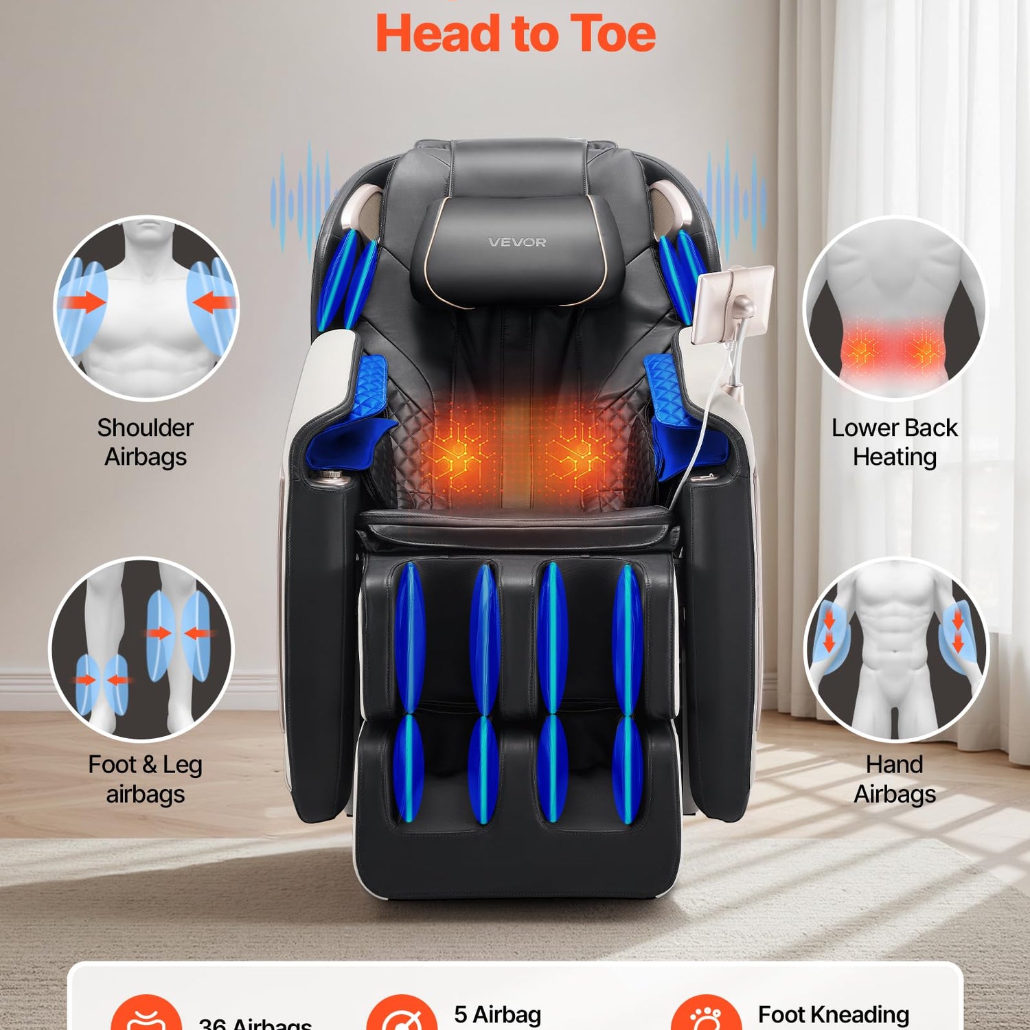 - Full Body Coverage: The ergonomic SL track adjusts to your body, fitting users from 4.6 to 6.1 ft / 1.4 to 1.86 m. With 36 airbags and 5 adjustable levels, it provides a comprehensive massage experience.