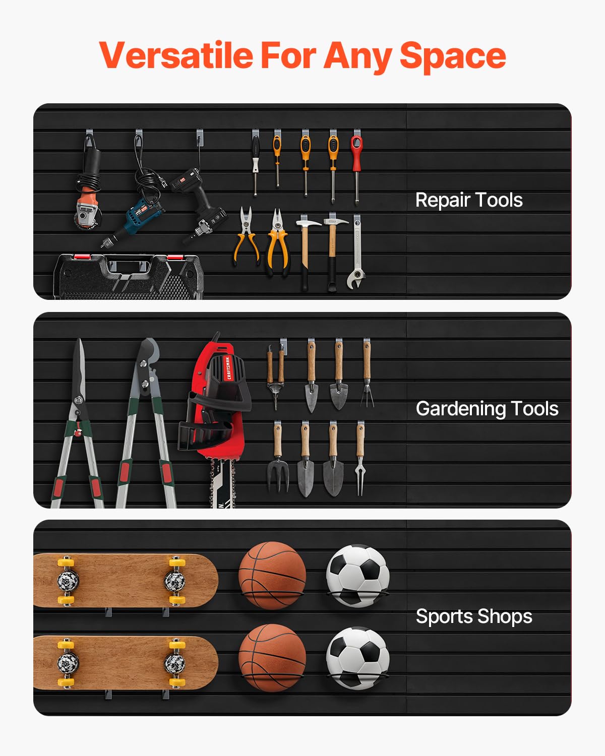 - Wide Application: Suitable for garages, workshops, gardens, and other home and commercial spaces, the slat wall panel provides a comprehensive wall organization solution that combines storage and display based on your specific needs.