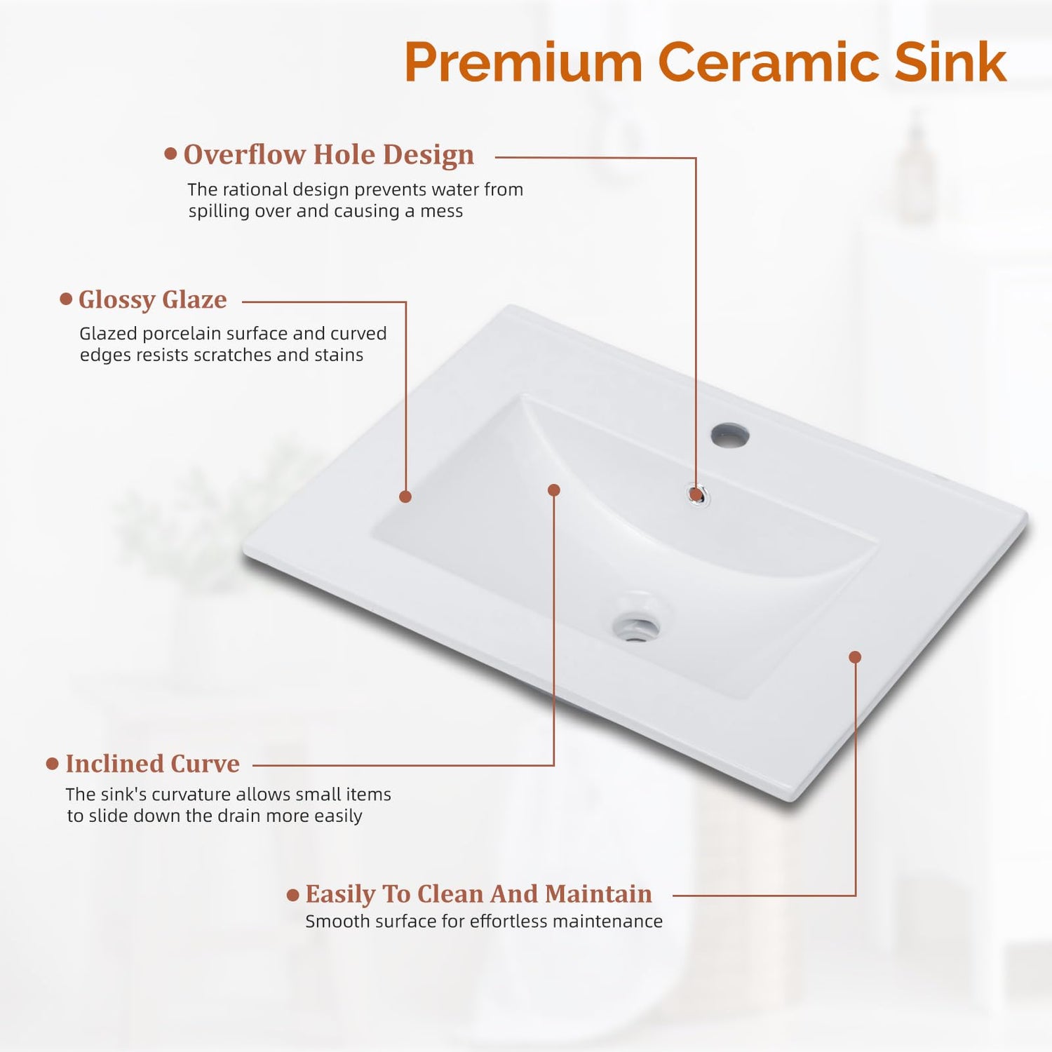 - 【Durable Ceramic Vanity Sink】: Scratch-resistant and easy-to-clean ceramic sink with a sleek white finish. Provides lasting durability and timeless elegance.