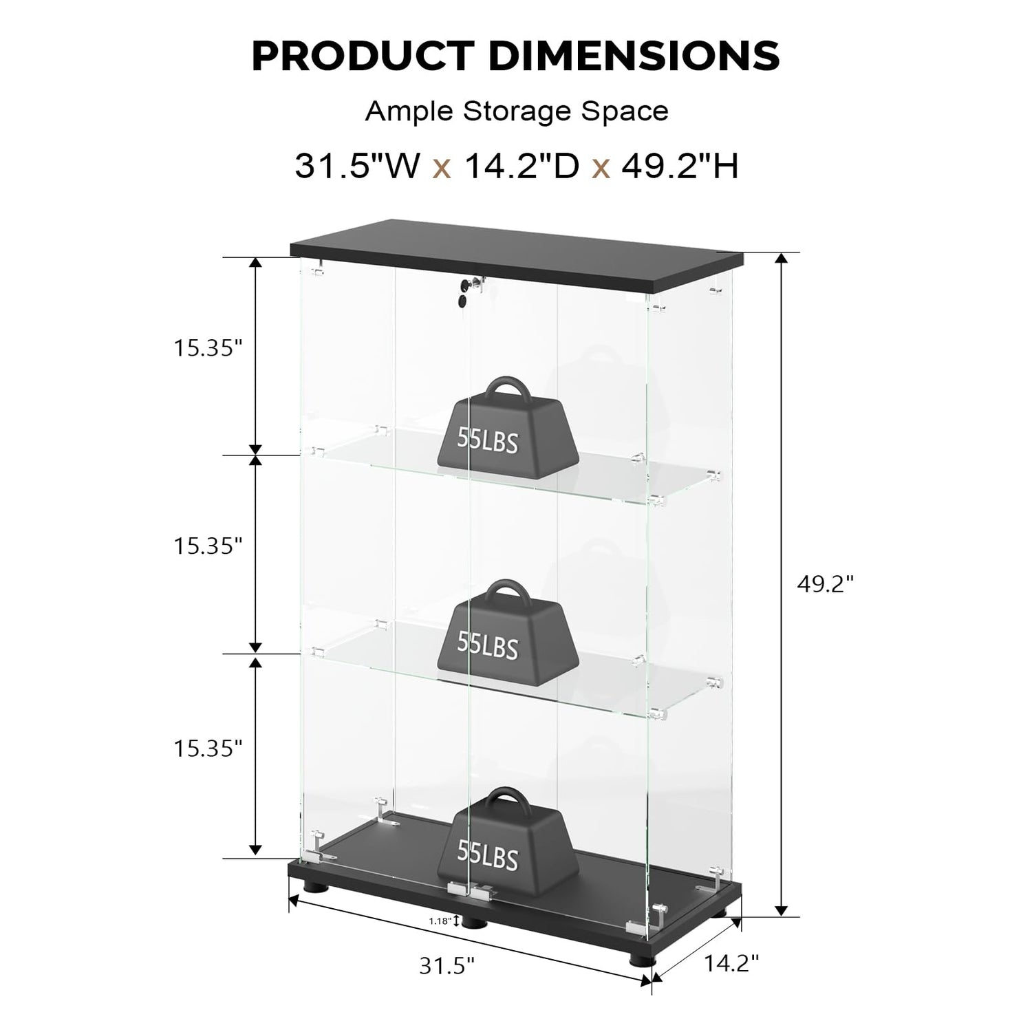- 【Ample Storage】The VINGLI Curio Cabinet, sized at 31.5" × 14.2" × 49.2", offers abundant space. Its 5mm thick glass shelves are perfect for showing off action figures, wine, books, or any cherished items. It's a dream Display Cabinet for collectors, homeowners, and anyone seeking to showcase their belongings in style.