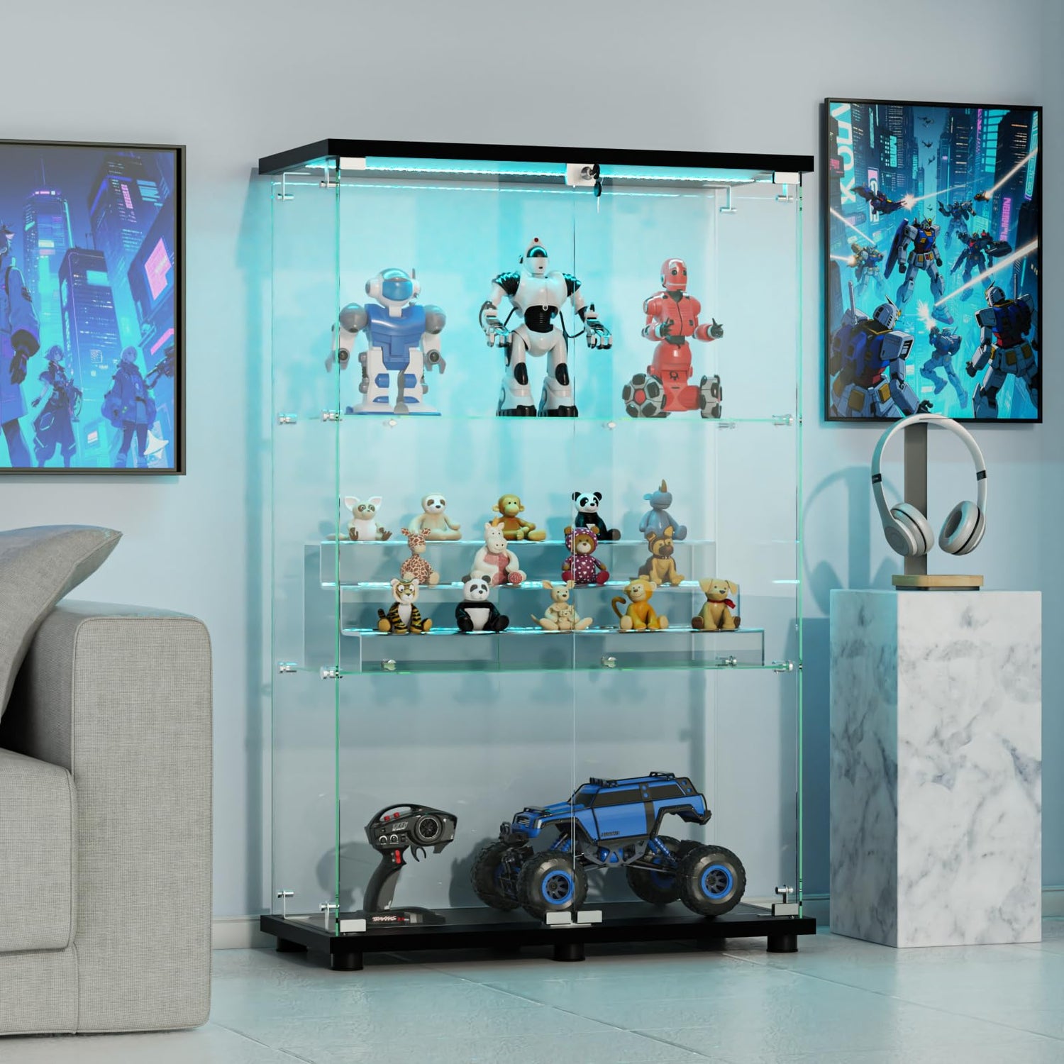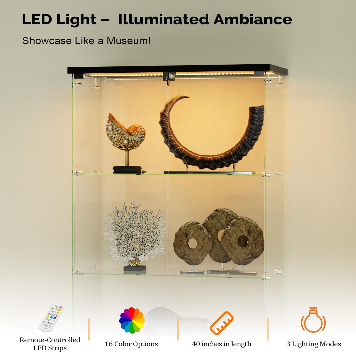 - 【LED - Illuminated Ambiance】The VINGLI Display Cabinet is equipped with an LED light strip that can be remotely controlled. You can choose from a variety of colors to create the perfect atmosphere for showcasing your collectibles, making each item stand out even more.