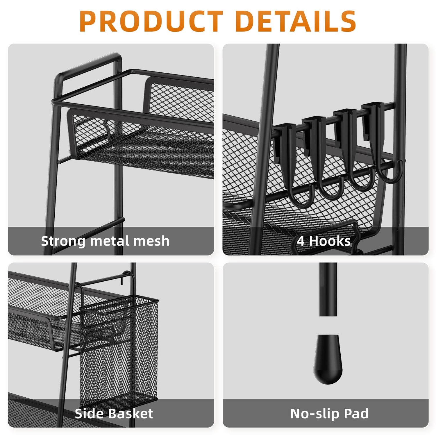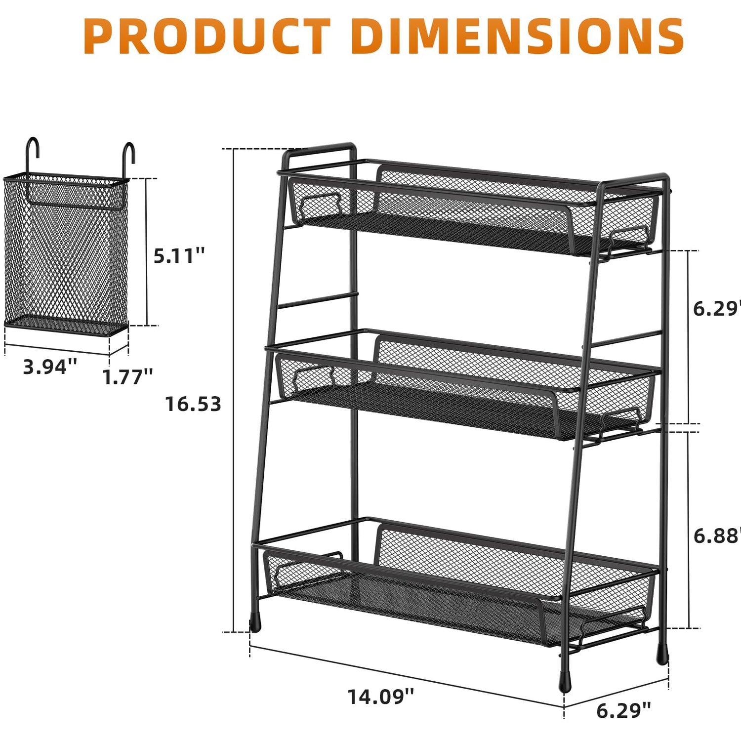 VITVITI 3-Tier Bathroom Organizer Countertop, Metal Wire Mesh Bathroom Counter Organizer Storage with Basket Hooks, Vanity Tray Shelf, Kitchen Spice Rack (Black)