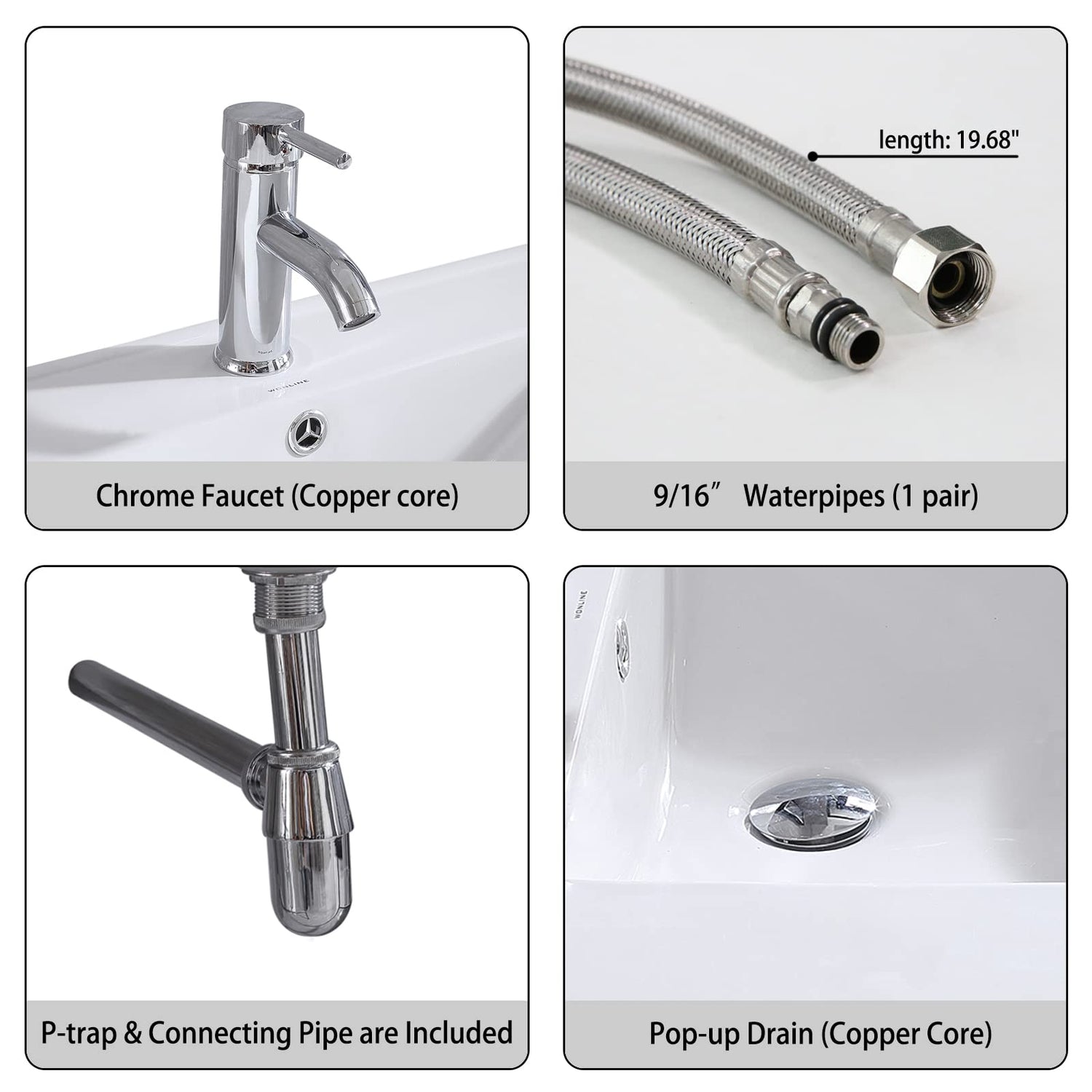 - Package Included - 36” bathroom vanity, ceramic vessel basin sink, wood frame bathroom vanity mirror, chrome faucet, drain, waterlines, P-trap, all hardware.Assembly required yourself.