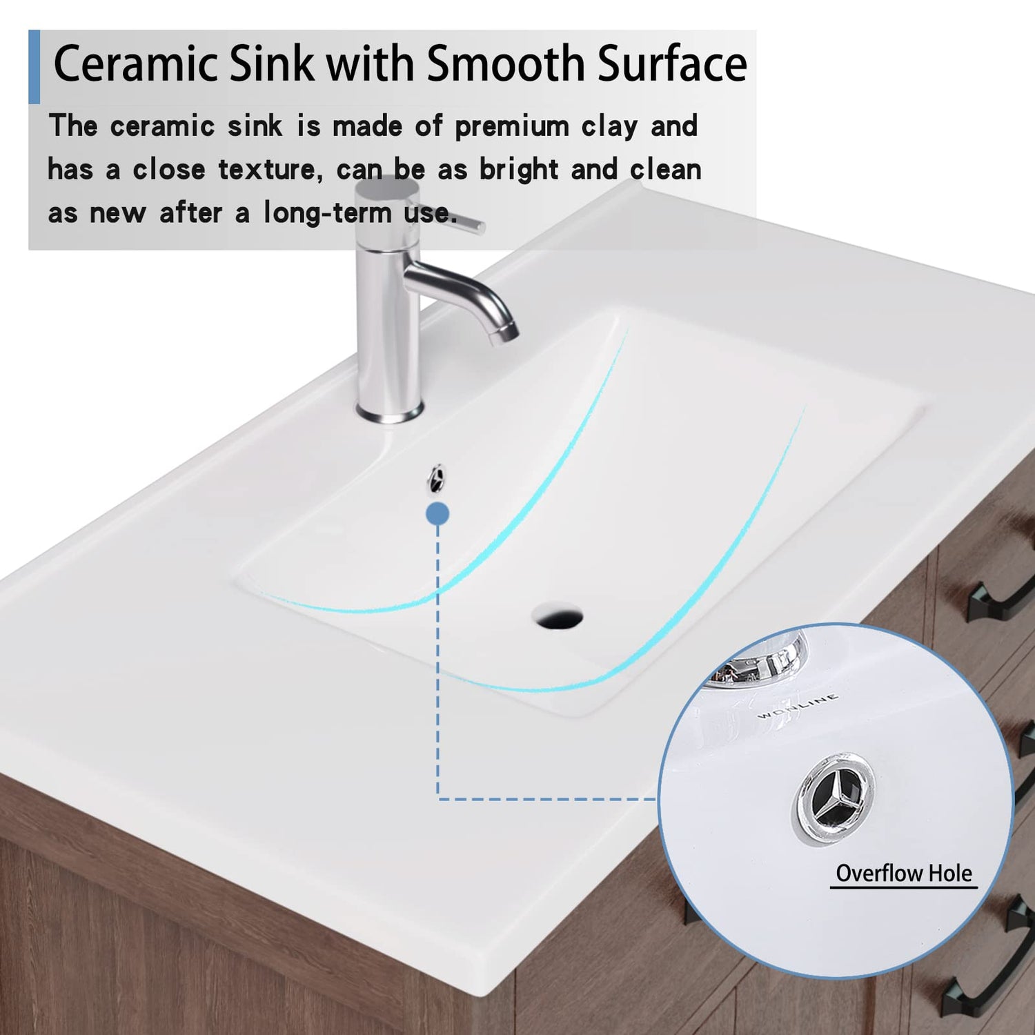 - 36'' Bathroom Vanity with Big Basin Sink - Ceramic sink is easy cleaning, broad enough for washing face and cloth. Hole on the sink is to avoid water overflow.