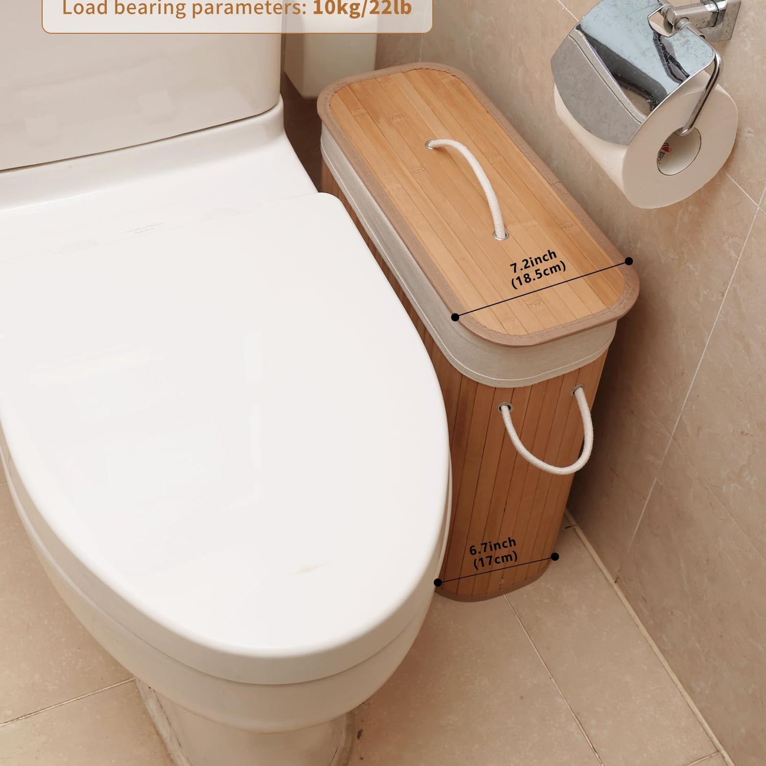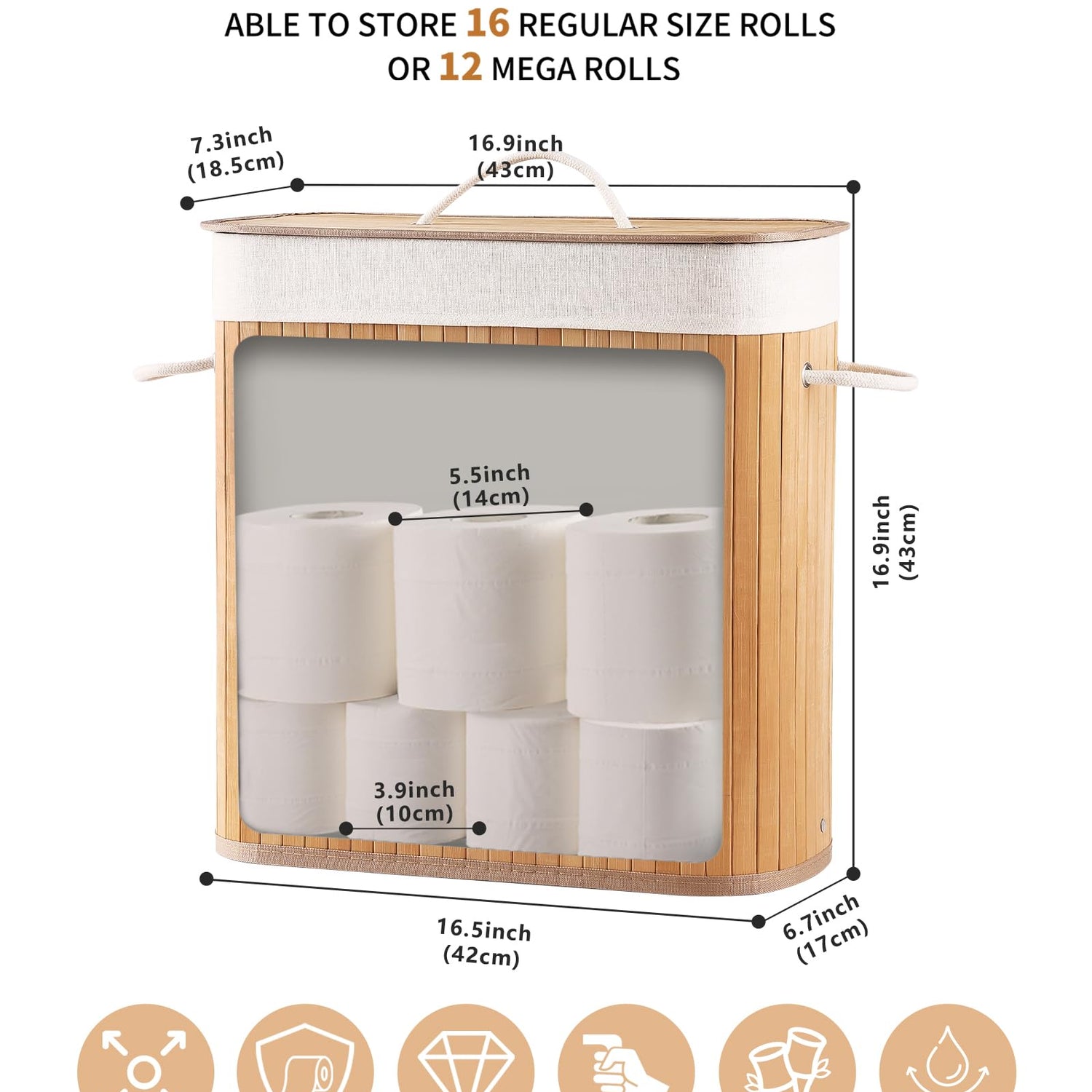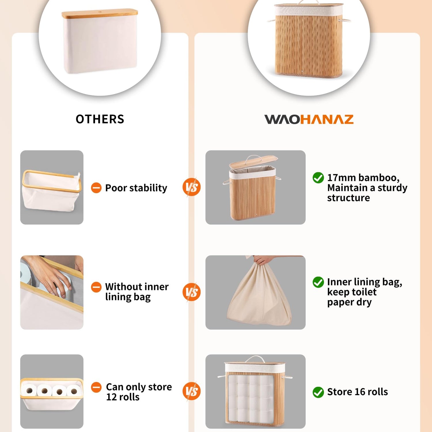 - 【Made of Bamboo】This toilet paper basket is made of natural bamboo. Thanks to the 17mm wide bamboo strips, the basket is sturdy and stable, capable of carrying up to 22lb