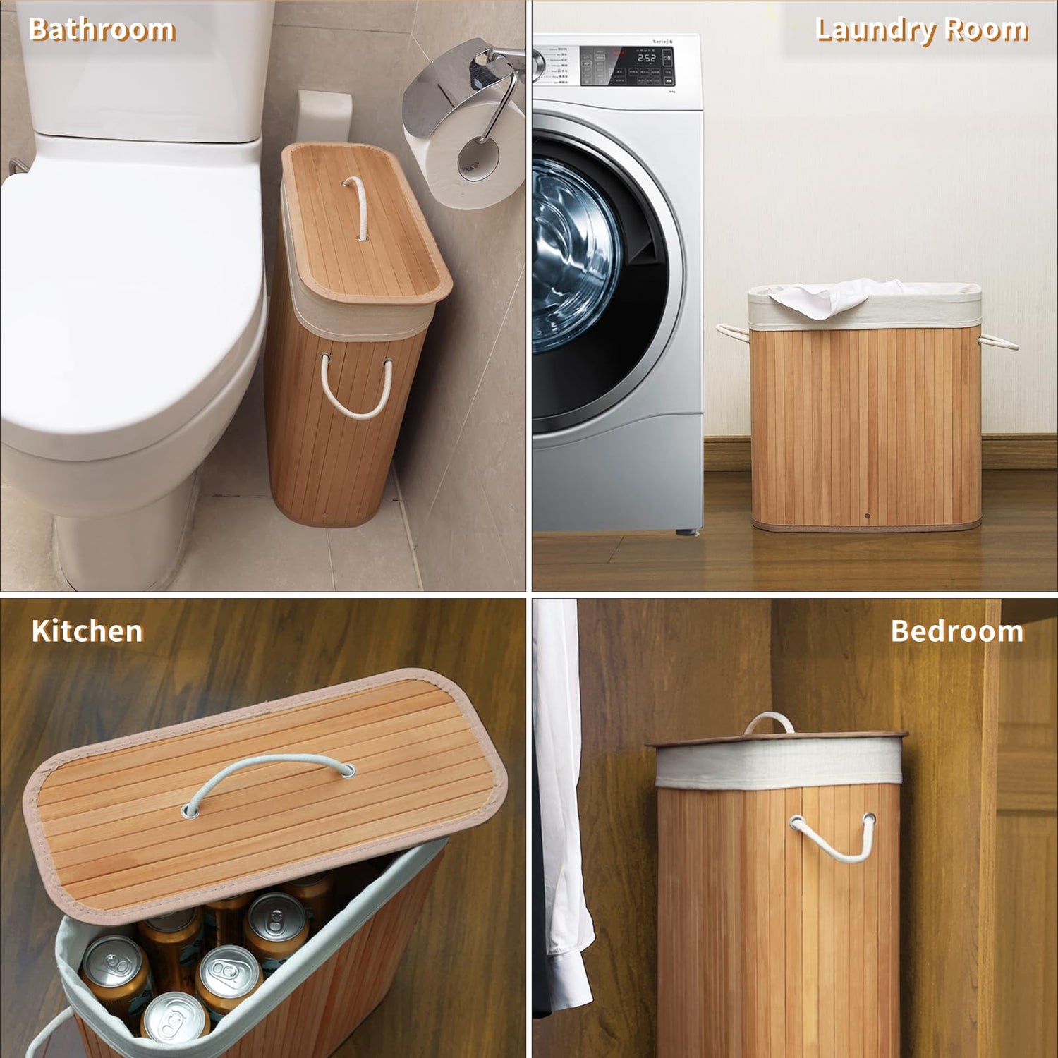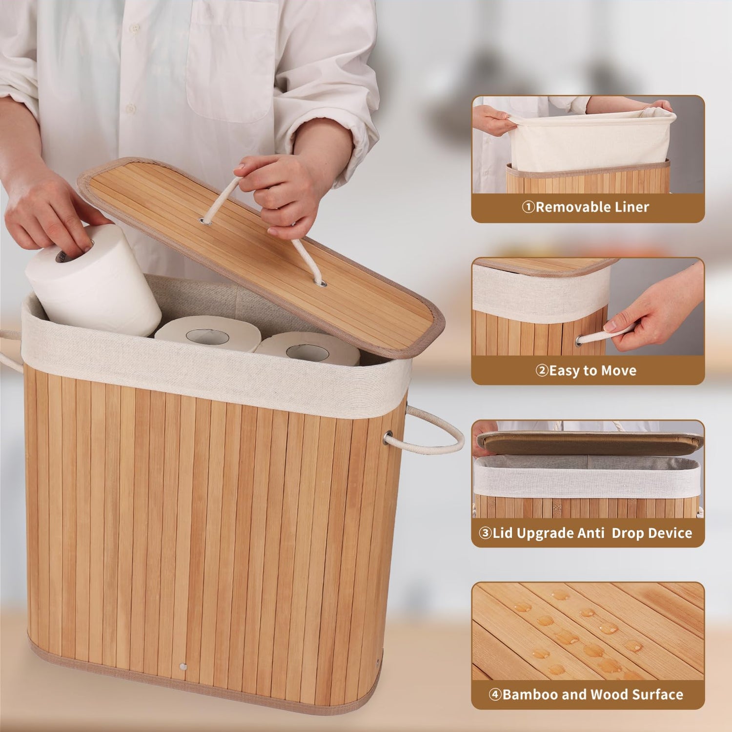WAOHANAZ Bamboo Toilet Paper Storage with Lid & Handel, 8 Gallons (30L), Sturdy Toilet Paper Basket, Organizer for Bathroom, Kitchen, Holder with Storage, Natural