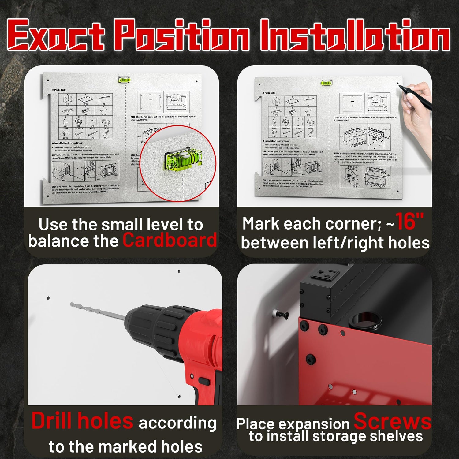 - 16 Inch Center Spacing Installation--Pre-drill the mounting holes according to the included 16-inch locator cardboard as well as a small level, align with the wall studs for a quick and solid installation, turning it into a rock-solid tool rack wall mount.