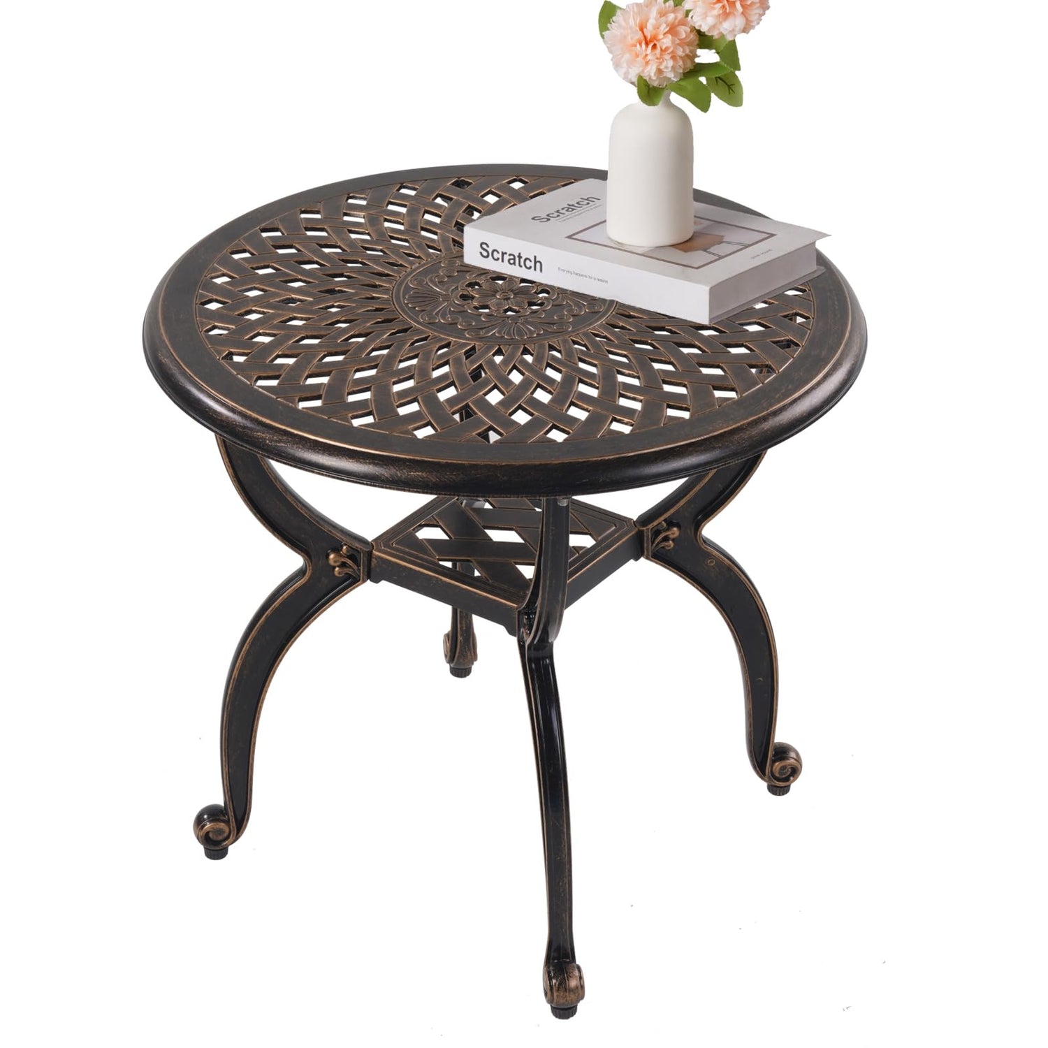 WILOUNGE Cast Aluminum Outdoor Side Table,Small Patio Table,Outdoor Coffee Tables for Patio,Garden,Balcony, for All Weather (Copper, Round)