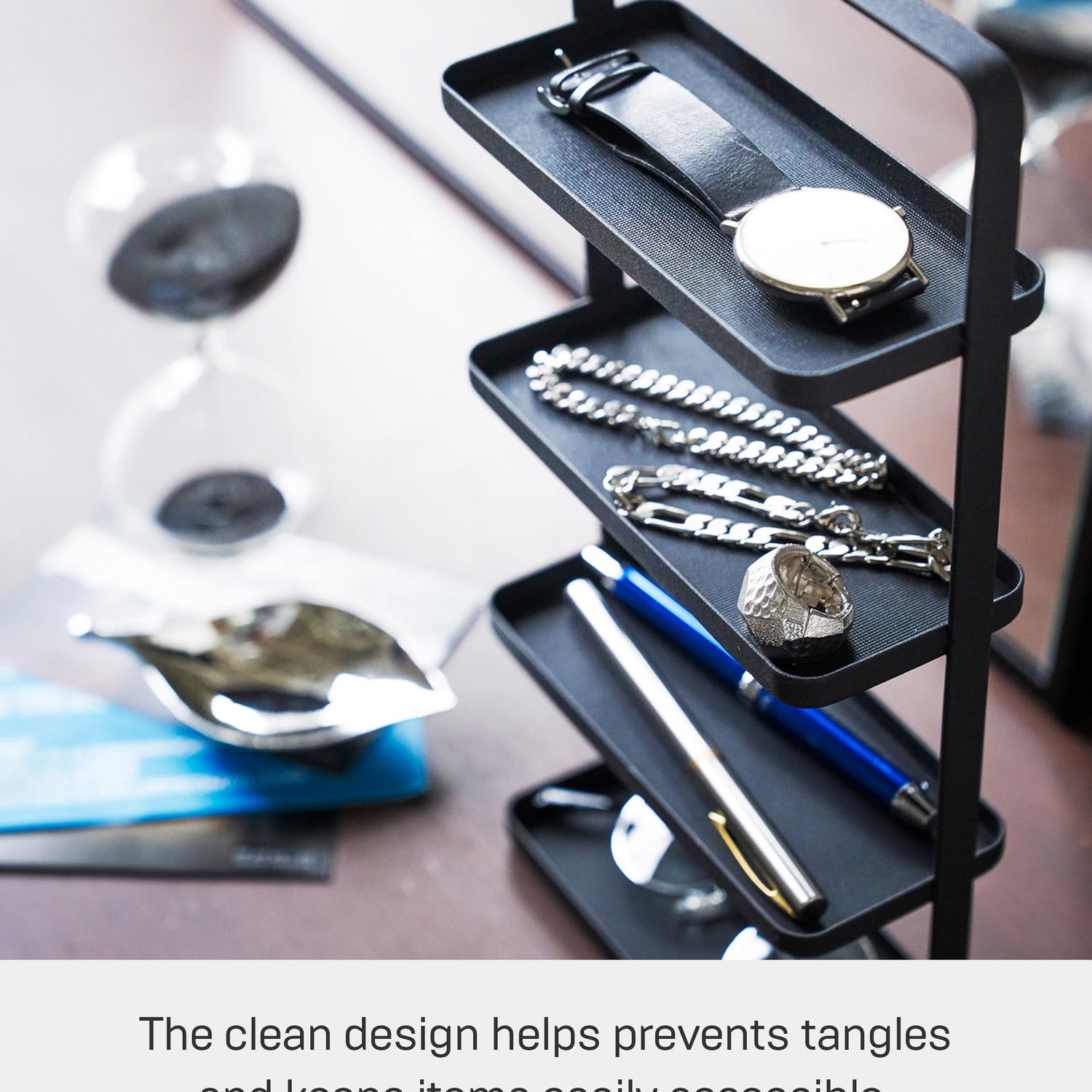 - [Keep your dressers and tables organized in your bathroom or bedroom.] Its clean design helps prevent your jewelry from tangling and keeps everything easily accessible.
