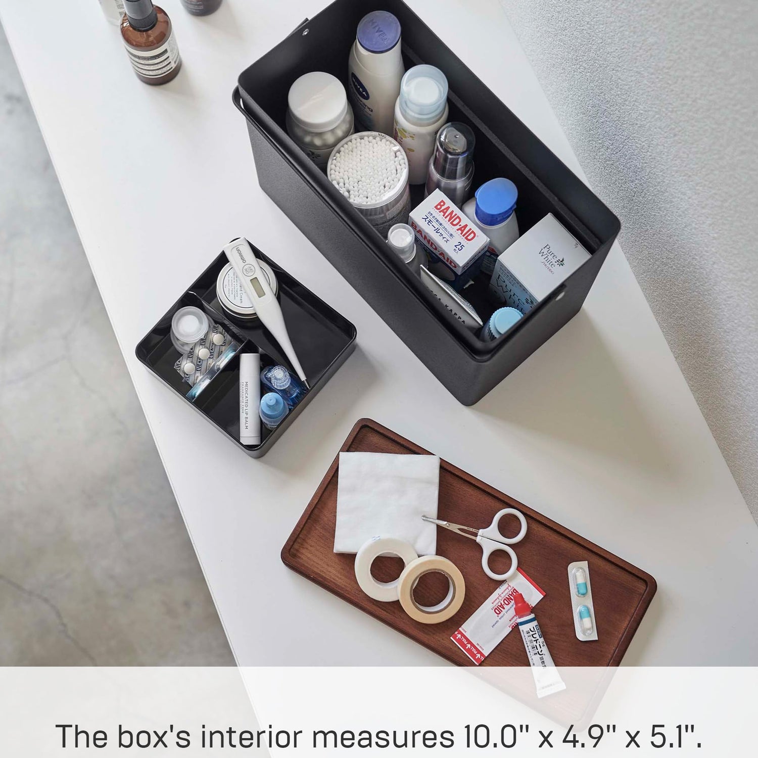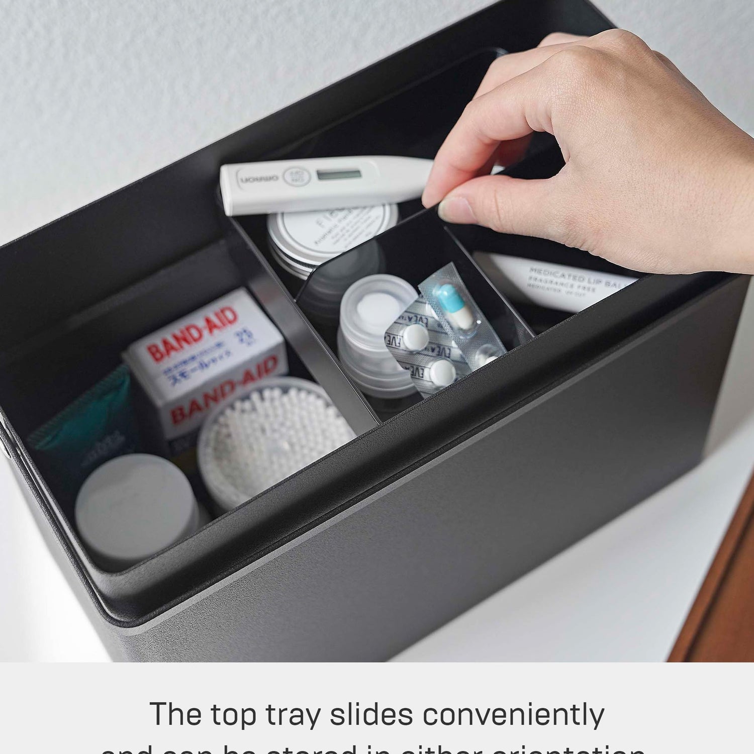 Yamazaki Home Tower First Aid Box Three Tiered Medical Supplies Metal Organizer with Multicompartment Storage - Steel + Wood