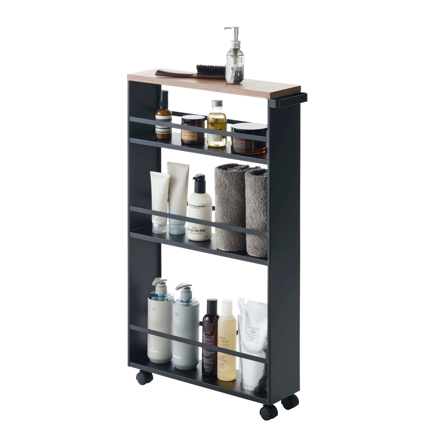 YAMAZAKI home Tower Rolling Slim Storage Cart With Handle Black