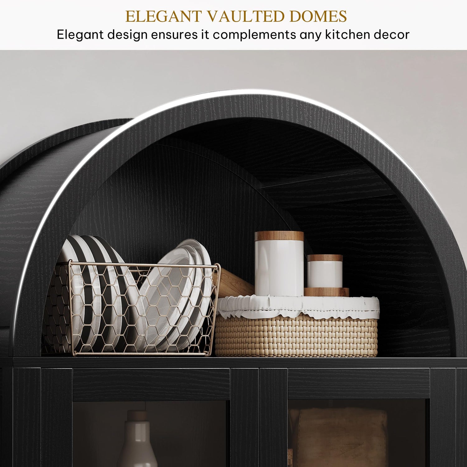 - Stylish Arched Design Cabinet - This arched bookcase cabinet is simple and elegant, The elegant arched design brings a modern and graceful ambiance to the kitchen or living room. It not only helps with storage but also adds a touch of sophistication and precision, creating a refined and timeless aesthetic. add charm to your home.