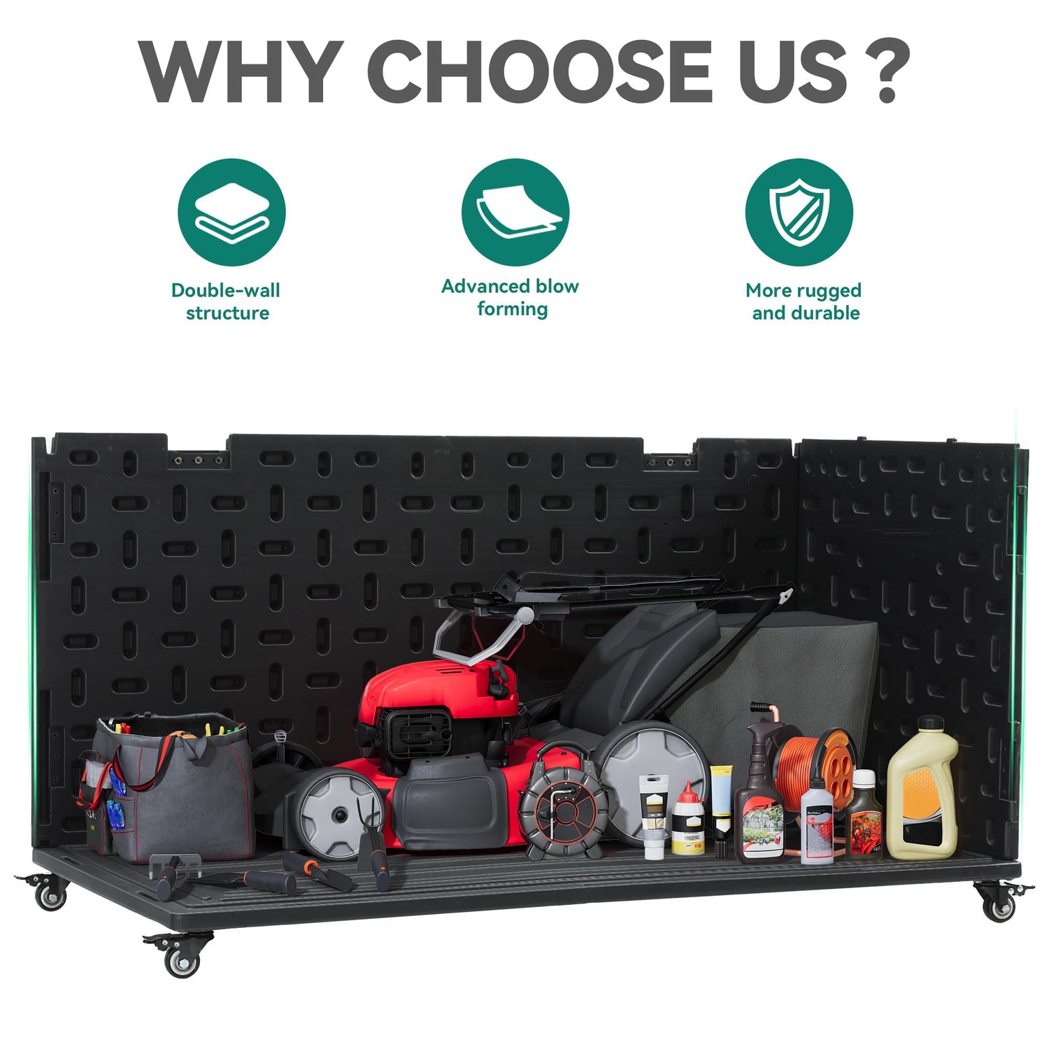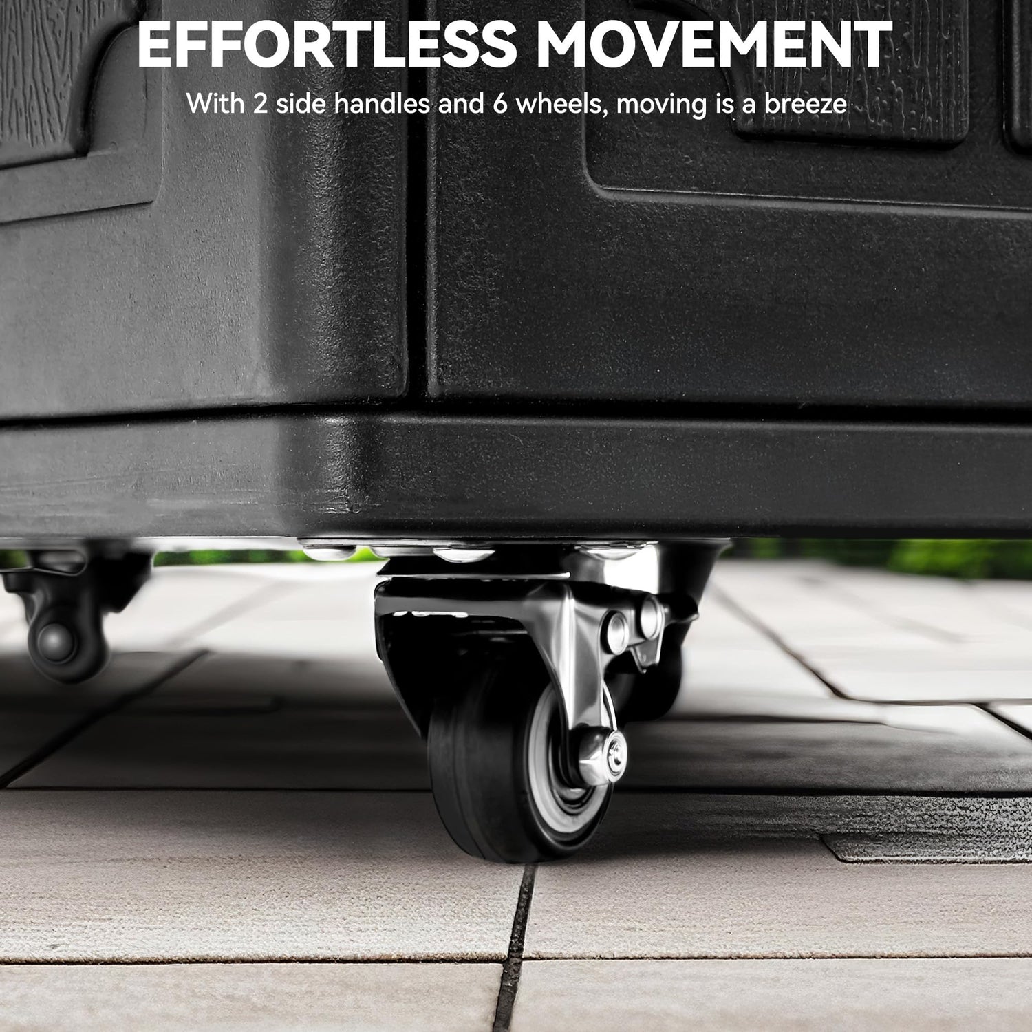 - Upgraded Six Omnidirectional Casters: Moving a heavy outdoor storage box black isn't fun, but with six omnidirectional casters, it's a breeze. Whether shifting it around your yard or rolling it inside for winter, the side handles & casters make it easy and stress-less