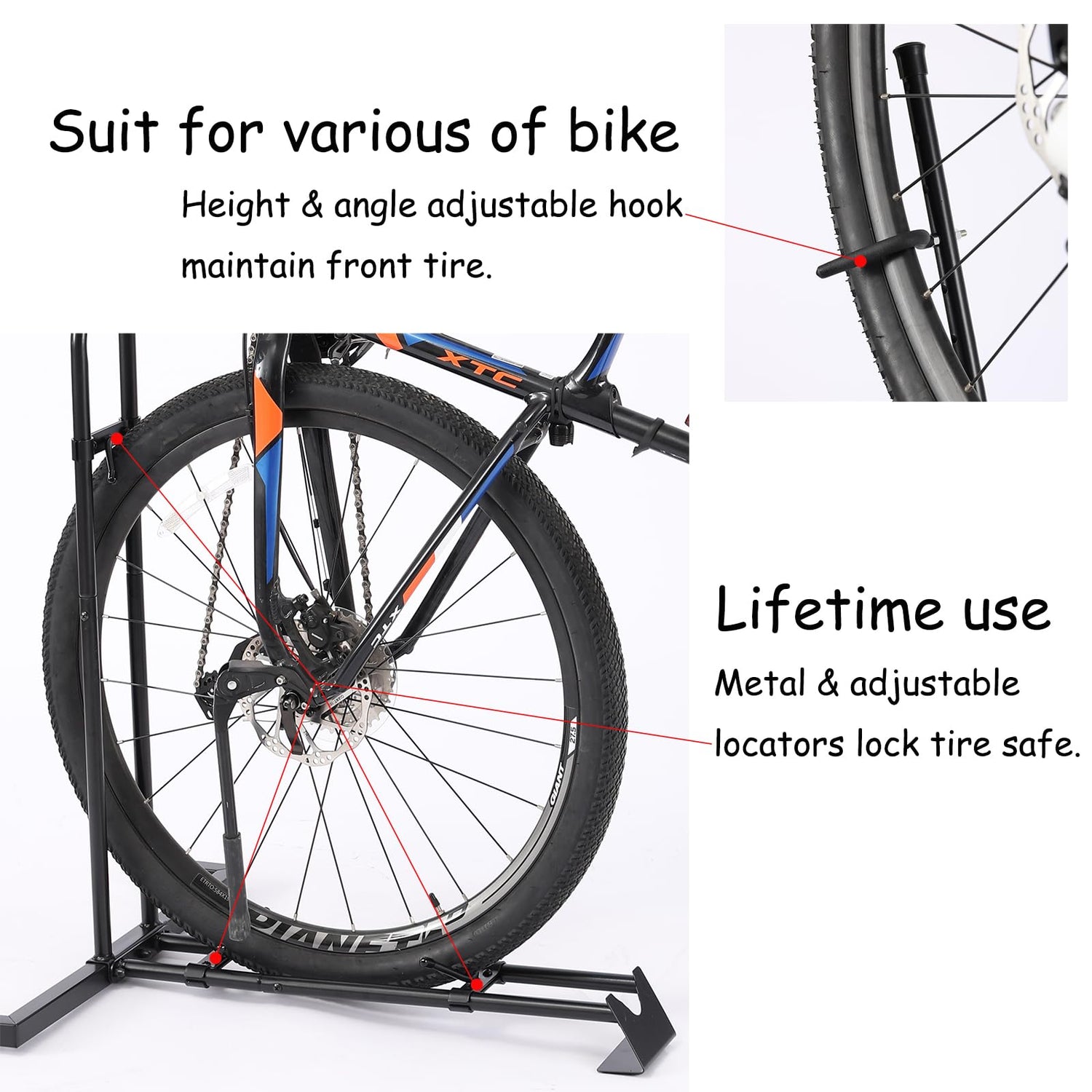 - 【Freestanding Convenience】: Enjoy ultimate flexibility! The bike storage rack self-supporting, freestanding design means you can place it anywhere– no walls or permanent fixtures necessary. Move the bicycle stand easily whenever your space needs change.