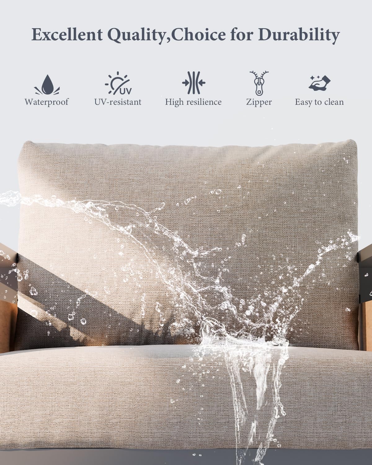 - ⛱️【5.5" Removable & Machine-washable Seat Cushion】 This outdoor furniture's cushion covers are removable and machine-washable, making cleaning effortless and keeping your set looking like new. Seat cushion of the set comes with high-density sponge, better for upper-body support, cushions are designed to be stable, keeping them from sliding around.