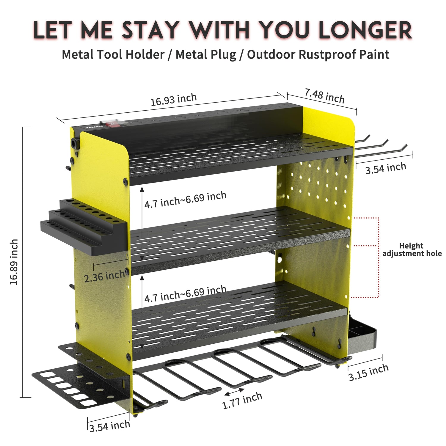 - Separate design,easy to install: ZEAKOC garage organization is designed with separate assembly. Screw,punch & install,is that easy. It's holes compatiable with pegboard. The middle 2 shelves are adjustable for more efficient storage
