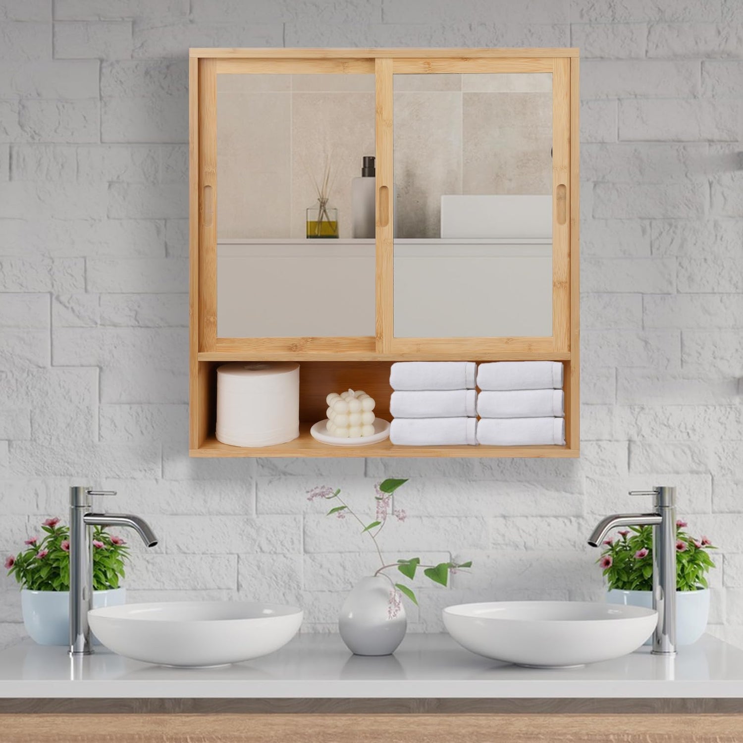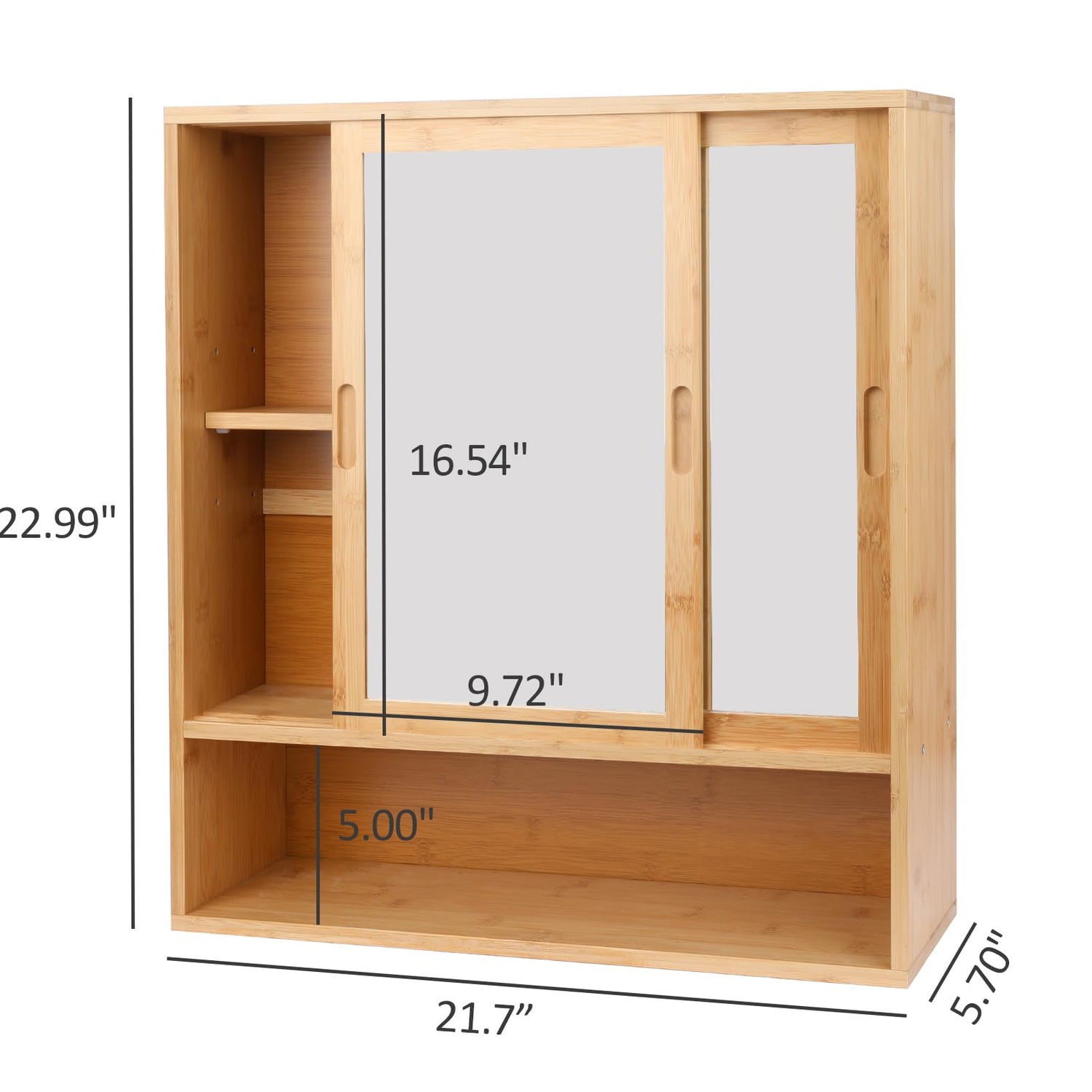ZYBT Bamboo Bathroom Cabinet,Mirrored Medicine Cabinets,Bathroom Cabinet Wall Mounted with Storage,Medicine Cabinets with Mirror,Over The Toilet Storage with 2 Sliding Doors