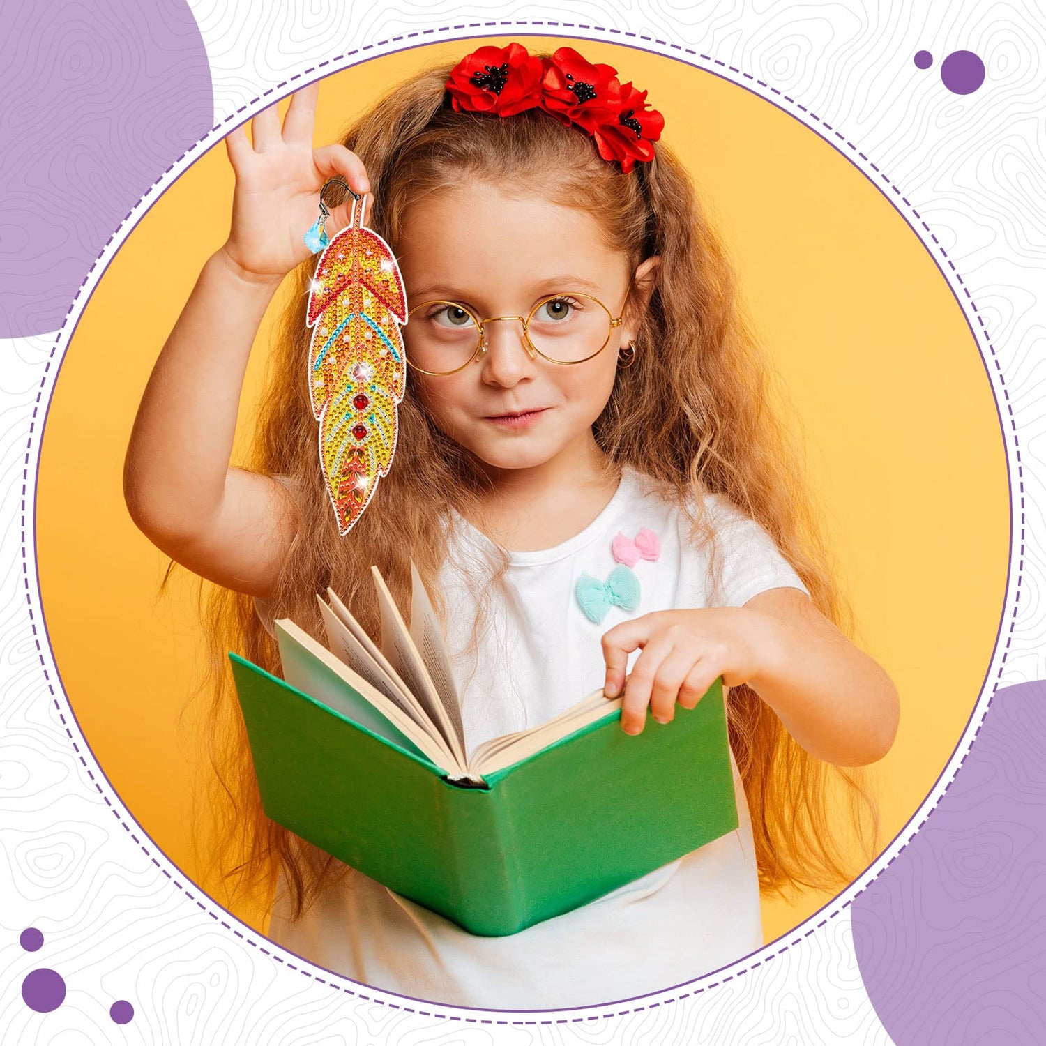 12 Pcs 5d Diamond Painting Bookmarks for Adults, DIY Acrylic Diamond Art Feather Bookmarks Gifts for Book Lovers, Read and Crafts Lovers School Library Book Club Gift Supplies