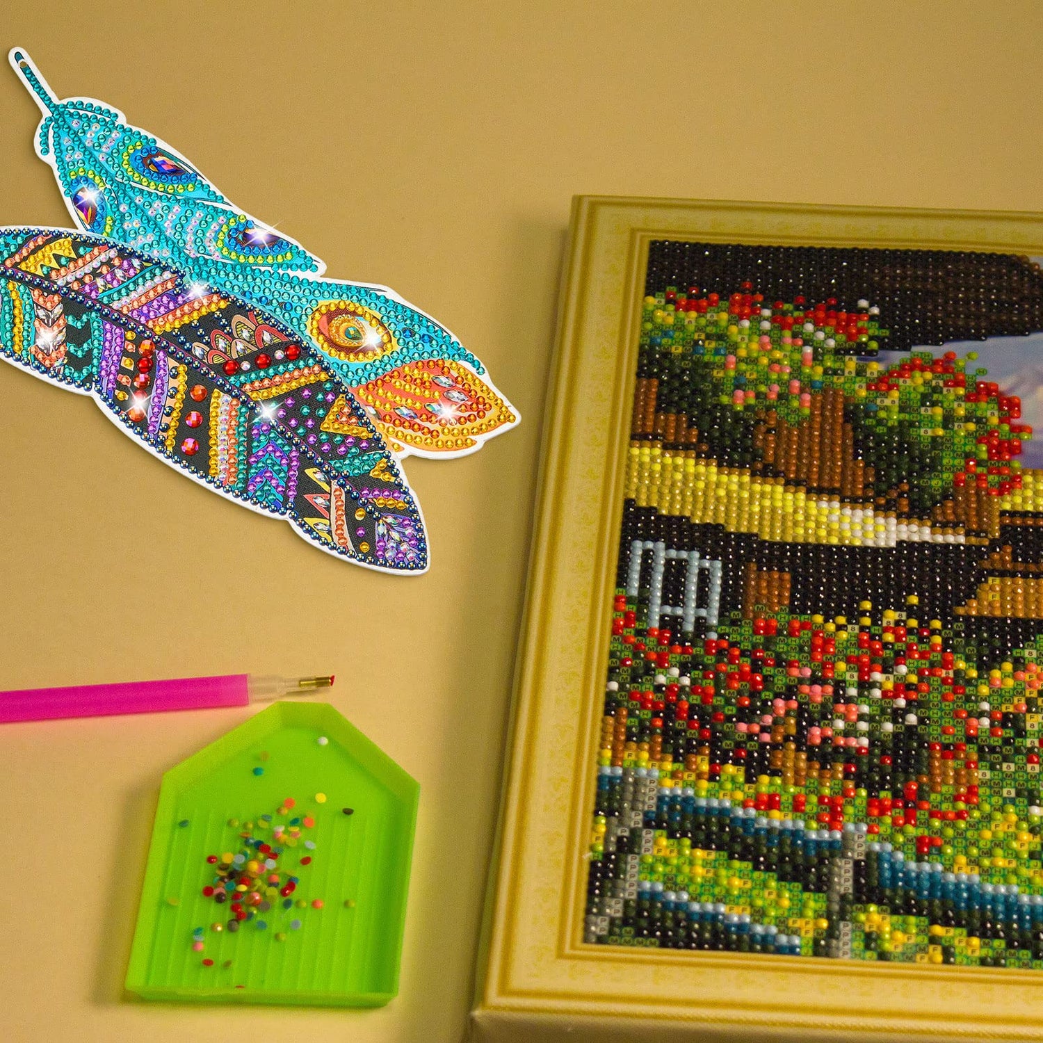 - Charming Styles: the vintage diamond painting bookmarks are featured with attractive feather shape and colorful feather patterns, and the iridescent rhinestone can reflect shiny luster under the light, which can attract people's attentions quickly