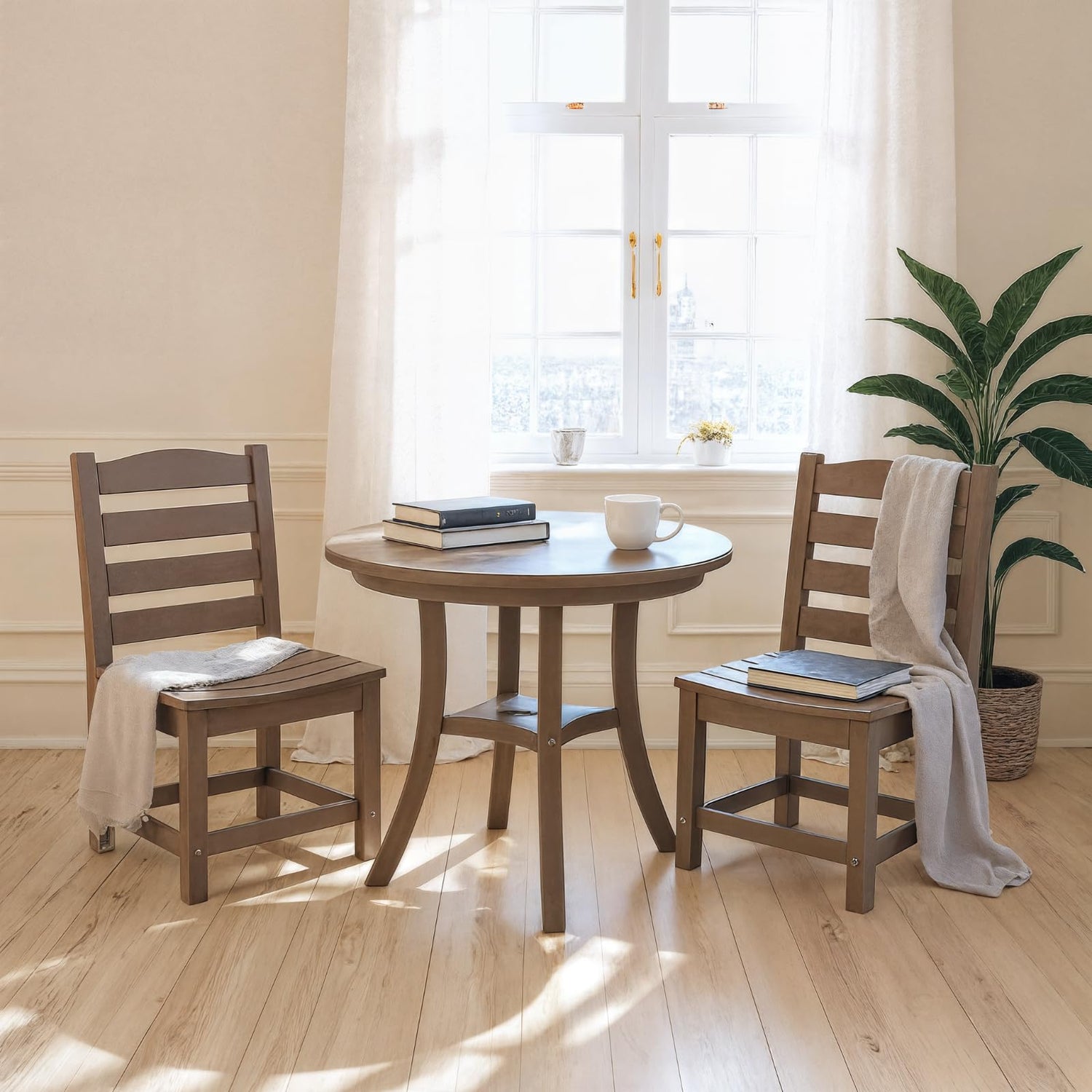 • Space-Saving 3-Piece Set – Includes 1 table and 2 armless chairs, perfect for cozy corners, small balconies, decks, or backyard seating.