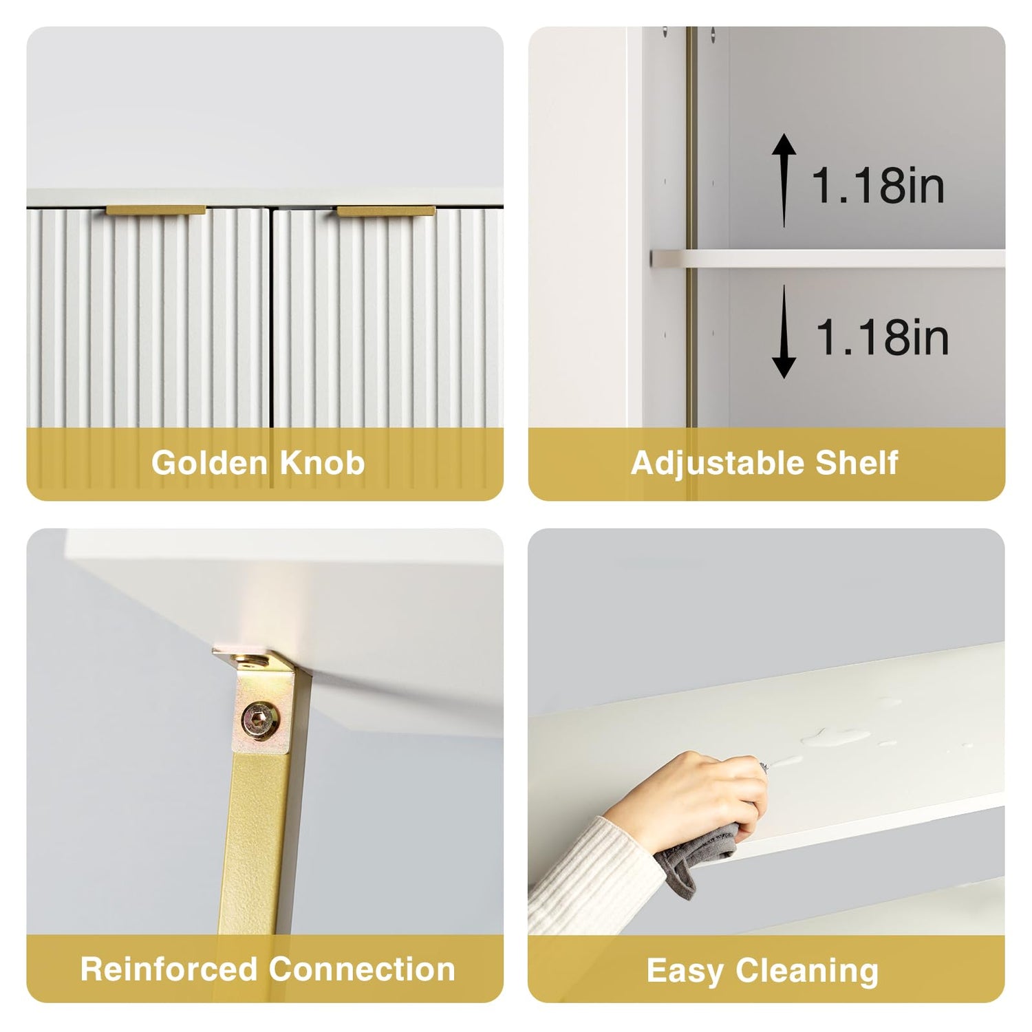 3 Tier White & Gold Ladder Shelf with Storage Cabinet, Modern Ladder Bookshelf with Doors, Wall Mount Bookcase with Metal Frame, Display Shelves for Living Room, Bedroom, Bathroom, Home Office