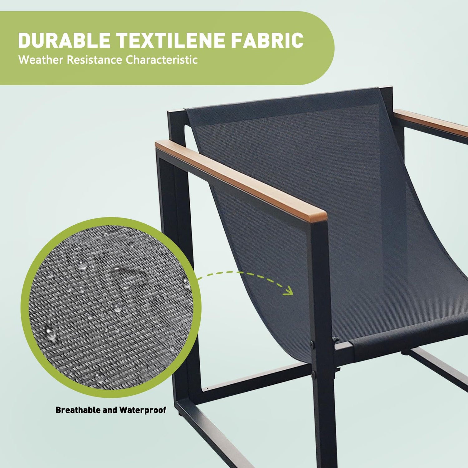 - STURDY AND DURABLES: This bistro chair features a sturdy steel frame for reliable support. The water-permeable Textilene fabric stands up to any weather, and both the chairs and table are easy to clean and maintain, ensuring long-lasting quality