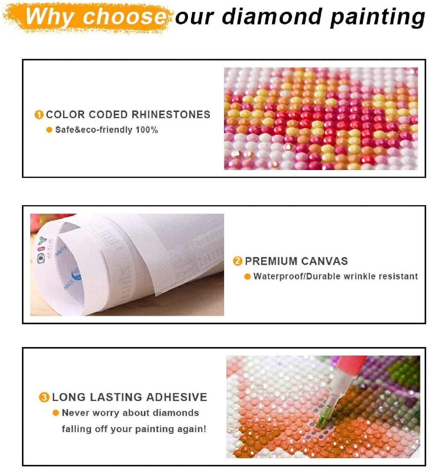 - 【100% Satisfaction Guarantee】If lose the diamond accidentally, please contact us, we will resend the diamonds.If you are not satisfied with your diamond painting kits, a refund or a new package will be issued. Please feel free to contact us and we will help you at any time.