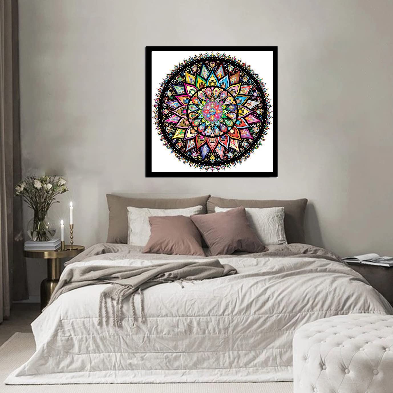 5D Mandala Diamond Painting Kits for Adults, DIY Diamond Art Full Drill Cross Stitch Embroidery Crafts, Mosaic Making, Home Decor (14 x 14 in) (C Black)
