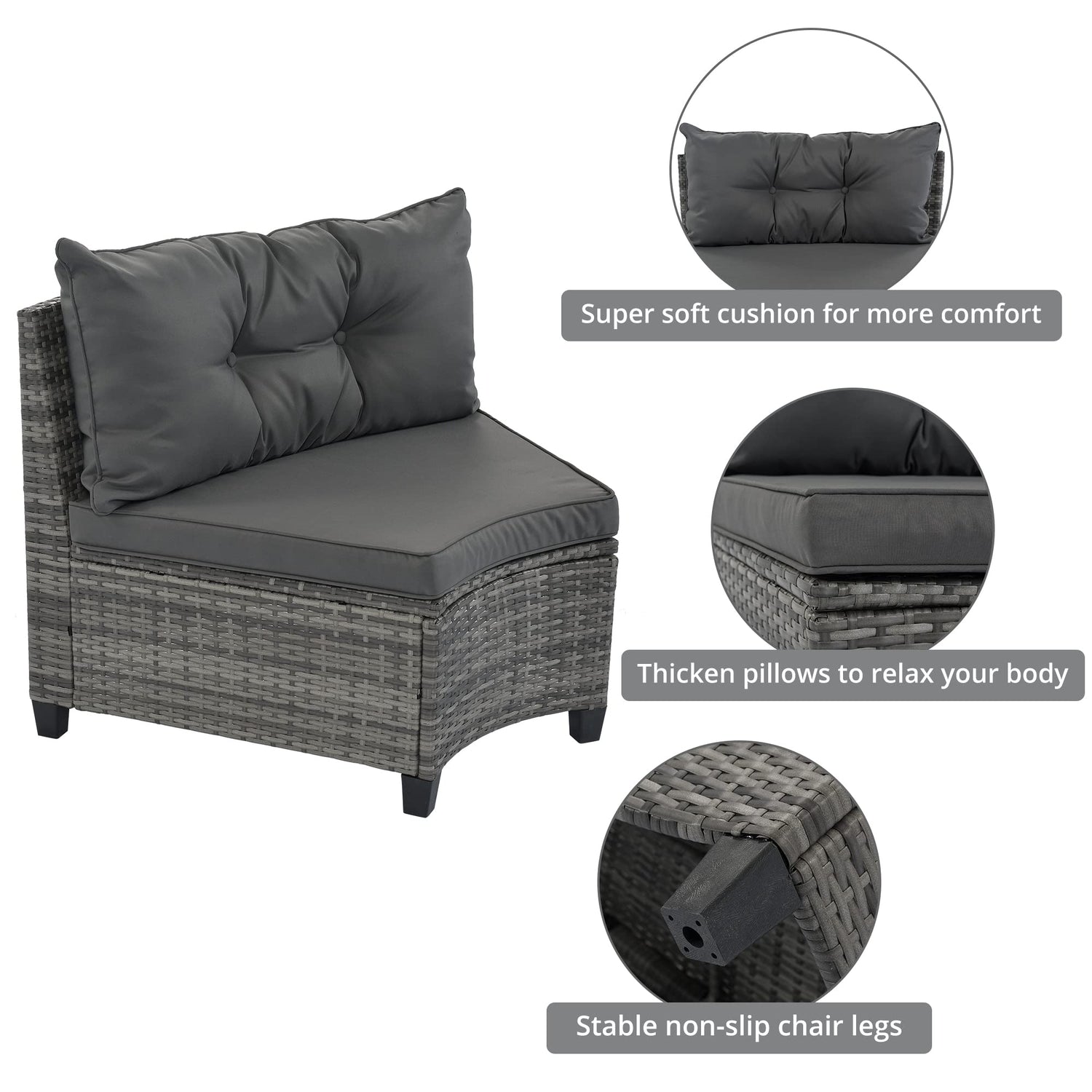8-pieces Outdoor Patio Half-Moon Sectional Sofa Sets With Rectangular Coffee Table, All Weather PE Rattan Wicker Curved Sofa Set, Water-resistant and UV Protected Conversation Sets (Gray 8-piecesr)