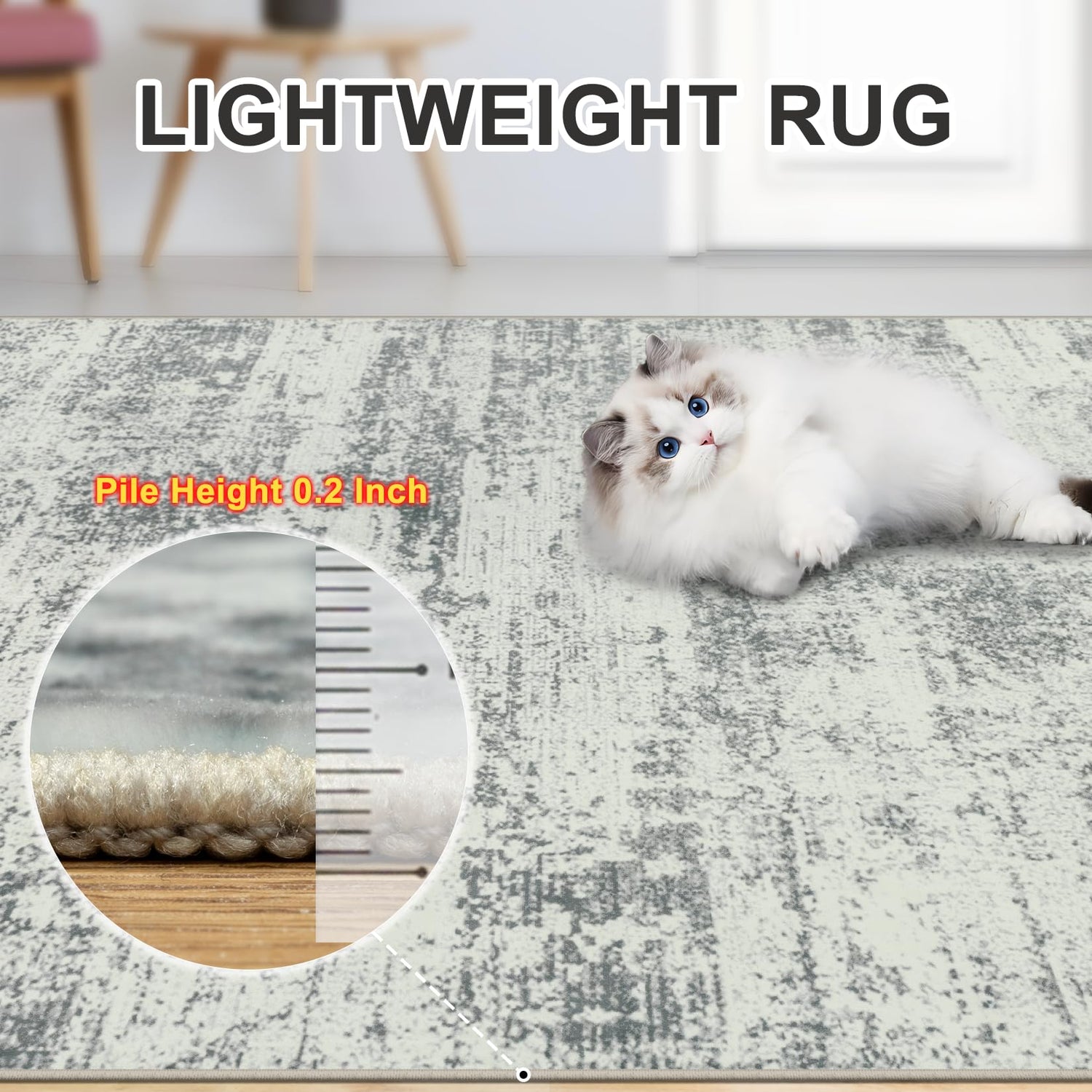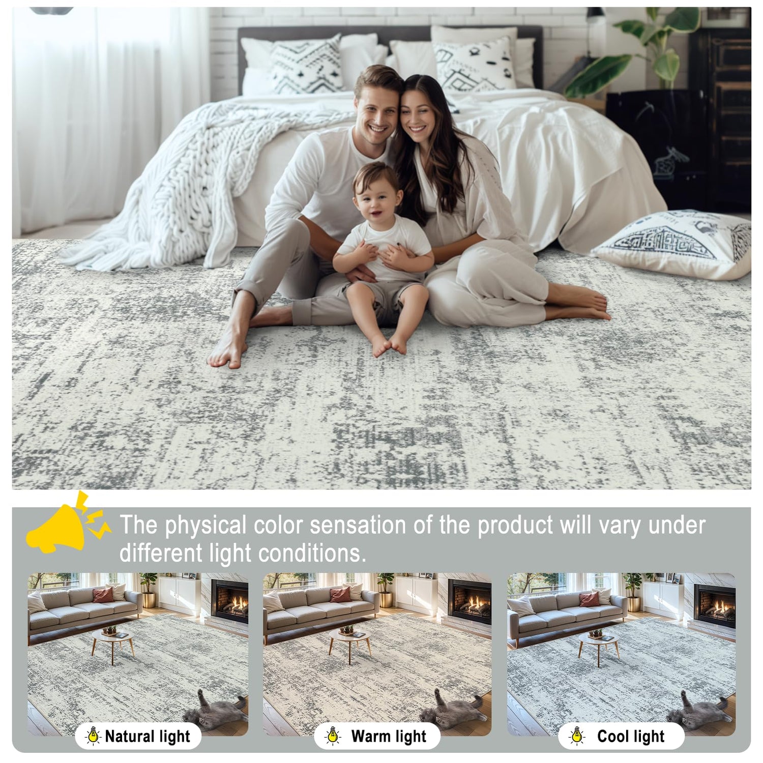 8x10 Area Rugs for Living Room - Washable Rug Modern Abstract Soft Large Neutral Non-Slip Carpet Indoor Floor Stain Resistant Thin Carpets for Bedroom Dining Room Farmhouse Nursery Home Office Grey