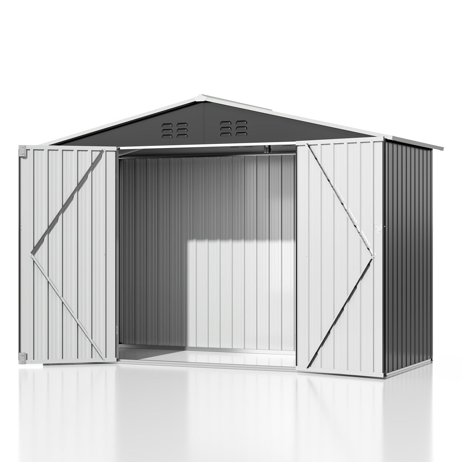 - 【Efficient and Secure Design】Our Garden shed features lockable doors for security, a sloped roof for water runoff, air-flow enhancing vents, and sturdy corner protectors. Designed with attention to detail for safety, ease, and lasting quality.