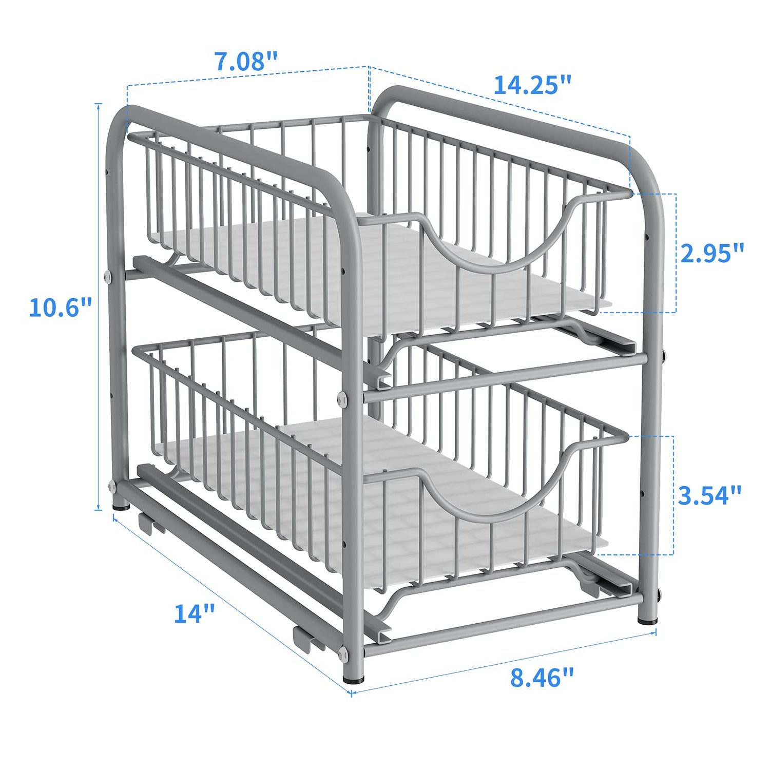 AIYAKA under sink storage 2 Tier Stackable Sliding Basket Organizer Drawer For Kitchen And Bathroom/Cabinet Drawers,silver
