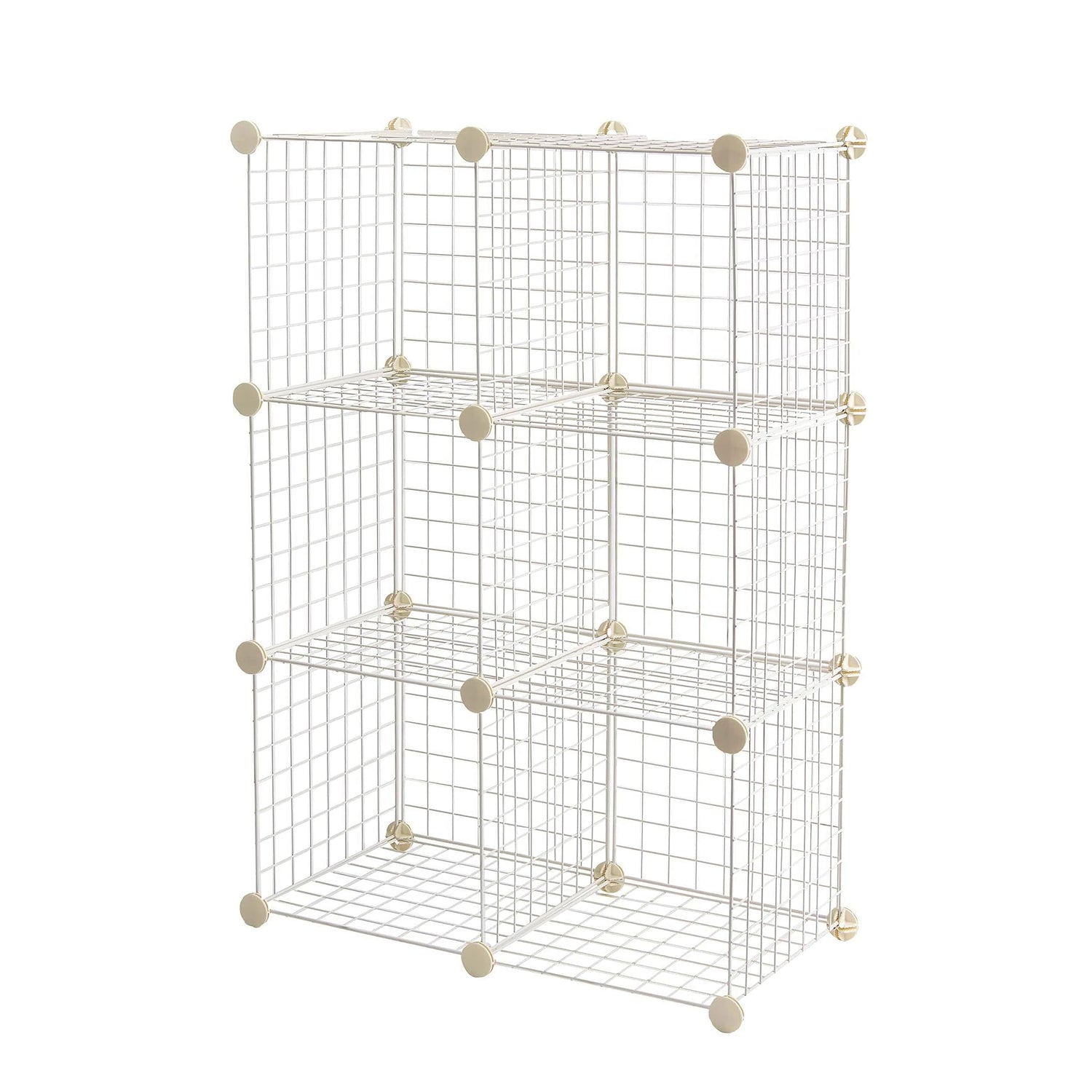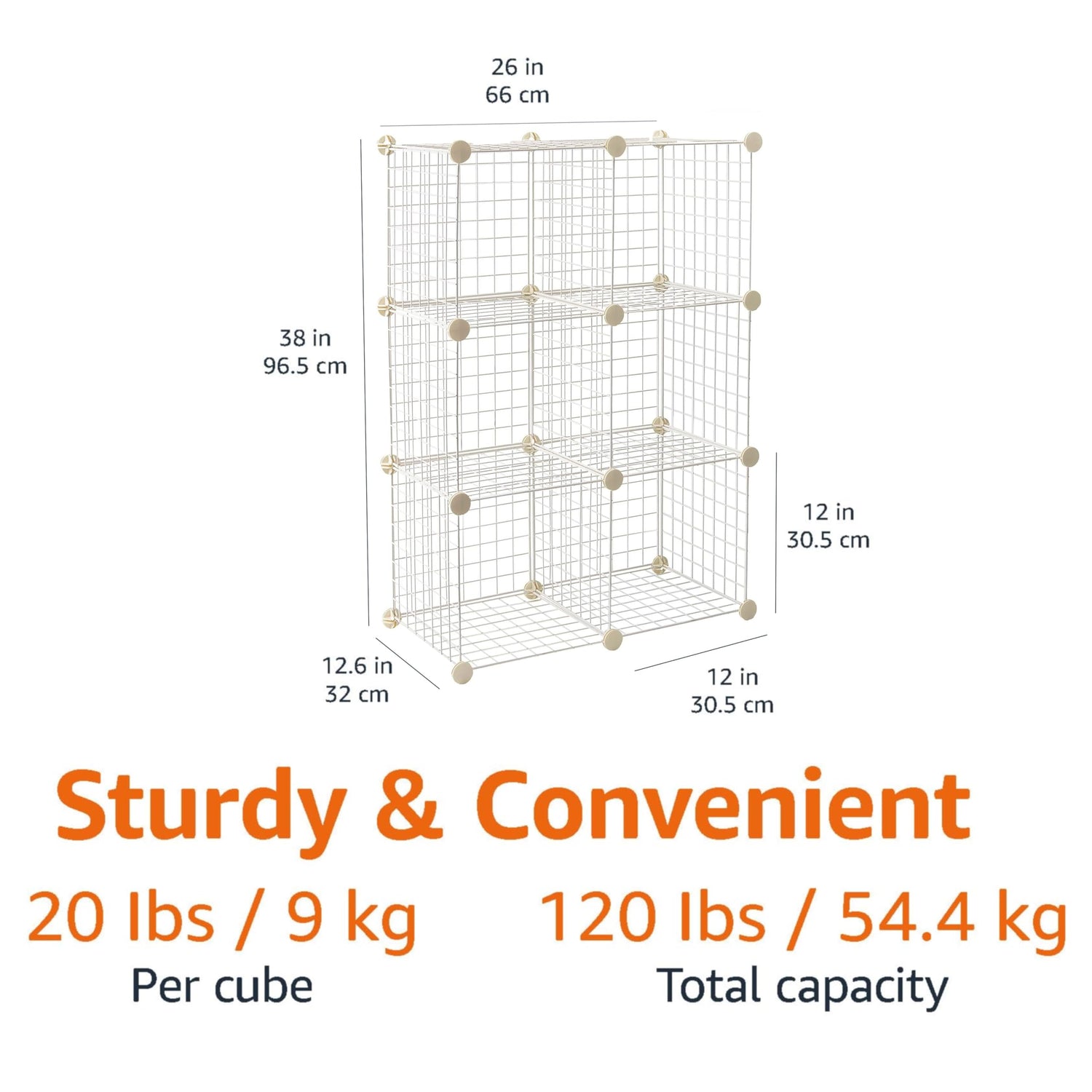 Amazon Basics 6 Cube Wire Grid Stackable Storage Shelves, 12.6 x 26 x 38 inches, White