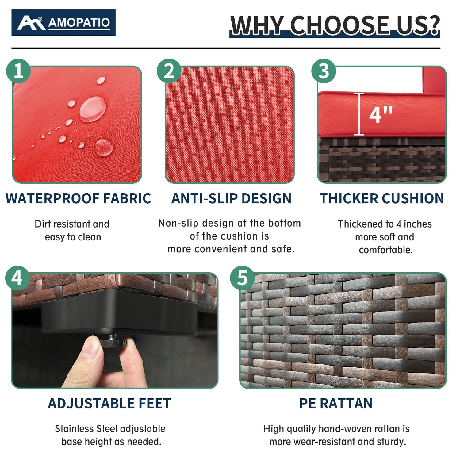 Amopatio Patio Furniture Set 7 Pieces Patio Conversation Set Outdoor Sectional Wicker Rattan Sofa with All-Weather Cover, Patio Furniture with Pillows Fits Porch Garden Backyard Balcony(Red)