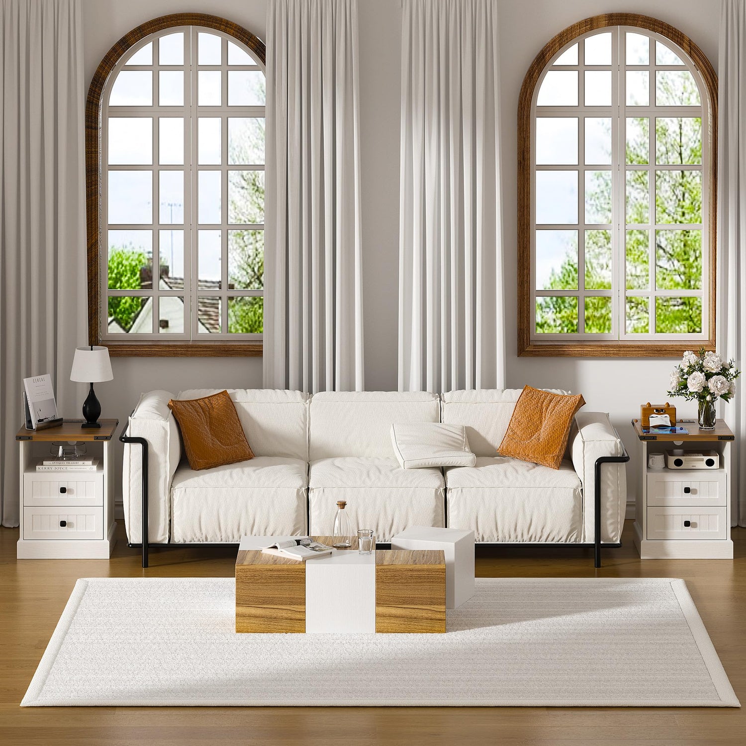 - 【Fit for Multiple Spaces】Designed to function as both a practical nightstand and a stylish end table,this piece works perfectly in bedrooms,living rooms,or offices.Its sturdy construction supports daily use while maintaining an elegant farmhouse appeal