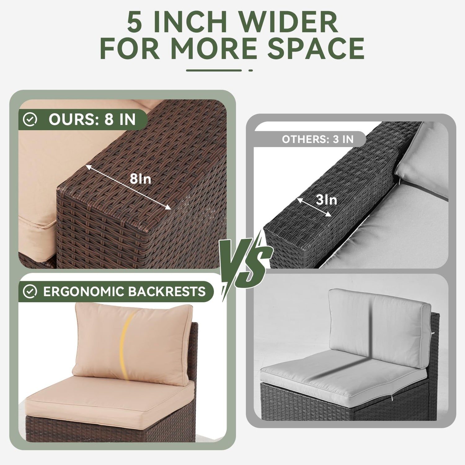 - 【Enhanced Wide-Arm Comfort】Upgrade your relaxation with 5-inch wider armrests—generously padded for unparalleled support. Whether resting a drink, propping up a book, or simply lounging, the extra space provides superior elbow-to-wrist comfort compared to standard designs. Perfect for stretching out or sharing the space, these broad, cushioned arms redefine outdoor ease